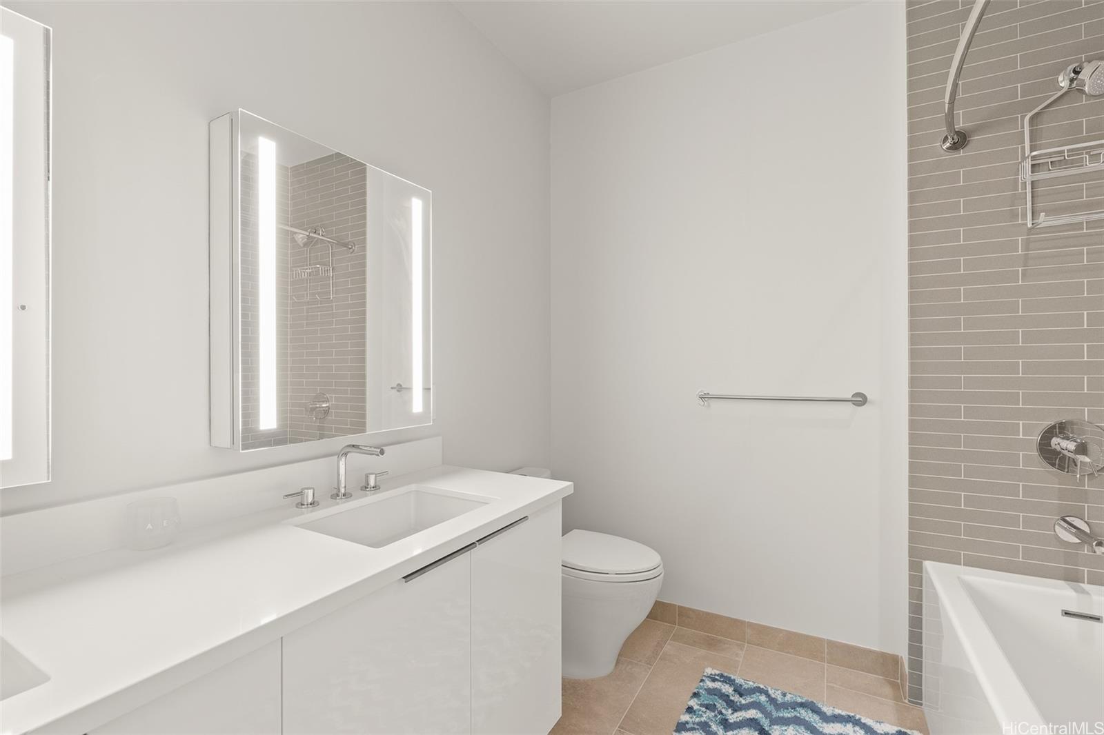 ダイヤモンドヘッド側に位置するオーシャンビューの「04」スタックユニット。ペントハウスには床から天井まで10フィートの窓があり、開放感を演出しています。4階駐車スペース(P4-069)の隣にはEV充電器付きの収納ユニットが設置されています。もう一つの駐車スペースはMezz.(PM-026)なので、出入りも簡単です。リビングエリアから全寝室まで、アップグレードされたエンジニアードウッドフローリングが敷かれ、窓は電動カーテンで全面カバーされ、メインバスルームにはTOTOウォシュレット、全クローゼットにはカリフォルニアクローゼットシステムが設置されています。Ae'oは、ホノルルで最も人気の高い新興住宅地の一つ、カカアコ、ワードビレッジに位置し、アラモアナショッピングセンターにもほど近い場所にあります。アラモアナビーチパーク、マジックアイランド、ショッピングセンター、劇場、様々なレストランも徒歩圏内です。建物には2つのプール、バーベキューパビリオン、ジム、サウナ、映画館、ゲストスイート、ドッグプレイエリア、プレイグラウンドなど、一流のアメニティが揃っています。