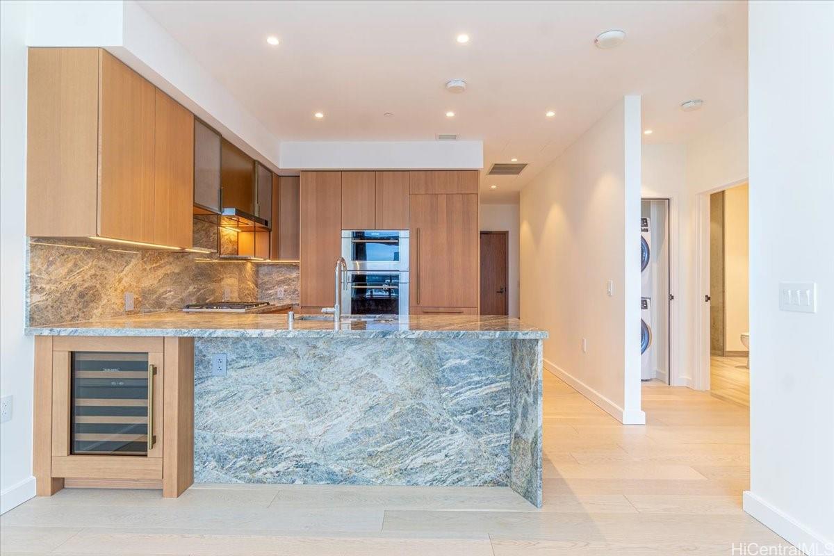 Discover unparalleled luxury in this 1-bedroom, 1-bathroom Grand Penthouse on the 40th floor of Victoria Place in Ward Village. Spanning 895 sq ft, this residence features 10-foot ceilings and floor-to-ceiling windows showcasing stunning ocean and Ala Moana Beach Park views. Enjoy exclusive amenities, including a grand lobby, Lauhala House with a private pool, and fifth-floor amenity deck with fitness center, yoga room, lap pool, resort infinity pool, spas, saunas, cold plunge, a theater, BBQ pavilions, Wine Room & much more. With 24/7 security, concierge, and valet services, plus proximity to Ala Moana Beach Park, Whole Foods, and Ward Village’s dining and shopping, this penthouse offers the ultimate in urban resort living.