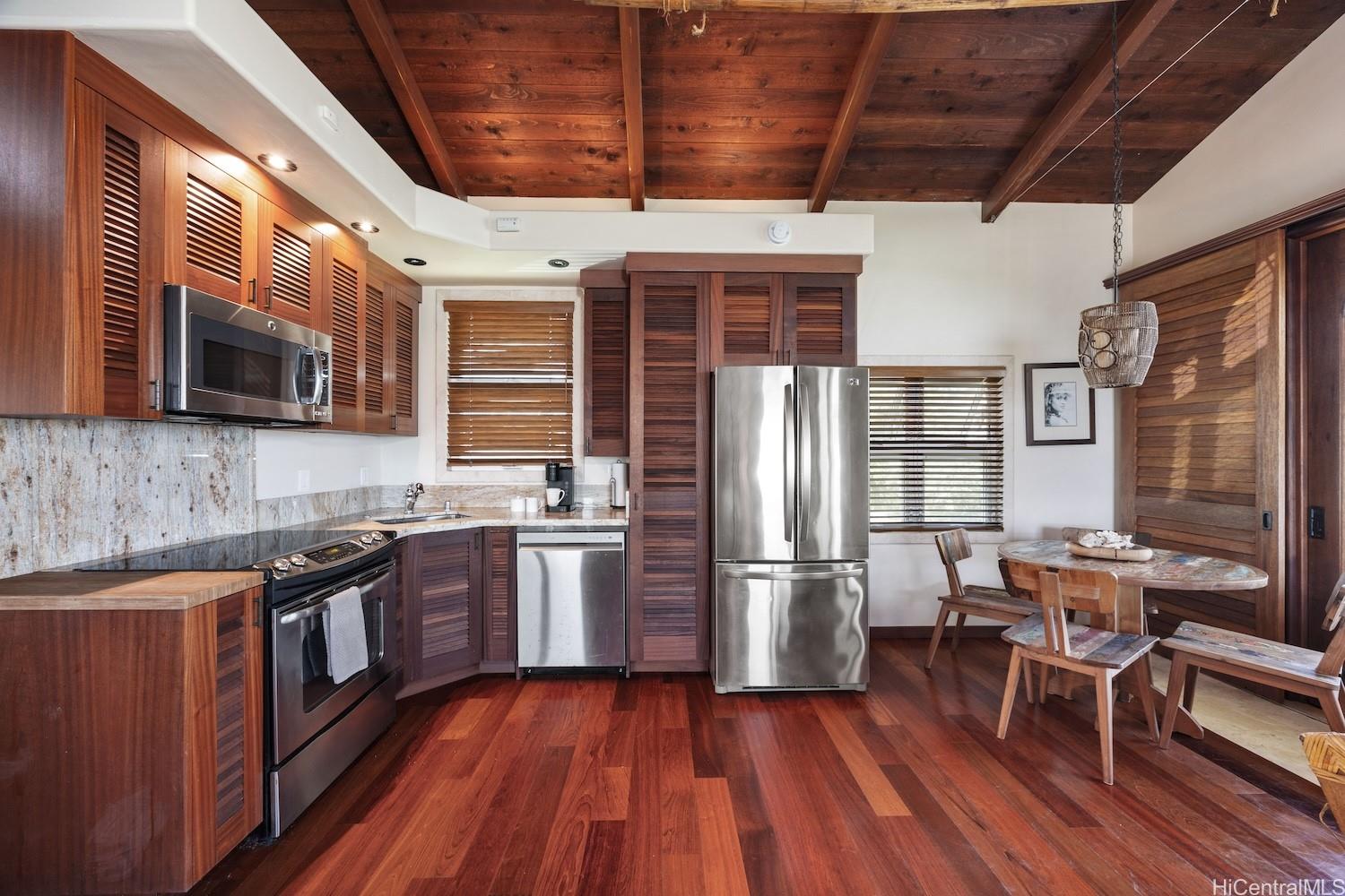 ノースショアのビーチフロントに佇む、非常に希少なリトリート。このプライベート感あふれる砂浜のビーチフロント物件は、穏やかで透き通った海と海岸線が出会う、数少ない物件の一つです。毎日のスイミング、釣り、サーフィンなど、ご自宅からすぐの場所でお楽しみいただけます。静かで人里離れた雰囲気でありながら、食料品店が並ぶショッピングセンター、診療所、レストラン、劇場、BYUハワイ校、そしてオアフ島屈指の美しい白砂のビーチなど、生活に便利な施設もすぐ近くにあります。メインの住居(55-373 Kamehameha Hwy)は2010年に入念に改装され、ブラジル産の無垢材のフローリングとトラバーチンタイルが随所に敷き詰められています。セカンドハウス(55-373A)は2014年に新築され、オリジナルの家と調和した仕上げとデザインの連続性を備えています。どちらの住宅も、アーチ型の天井、遮るもののない海の景色、プライベートビーチへのアクセス、そして完璧な維持管理が特徴で、ノースショアの真のビーチフロントの複合施設を所有できる稀有な機会を提供します。