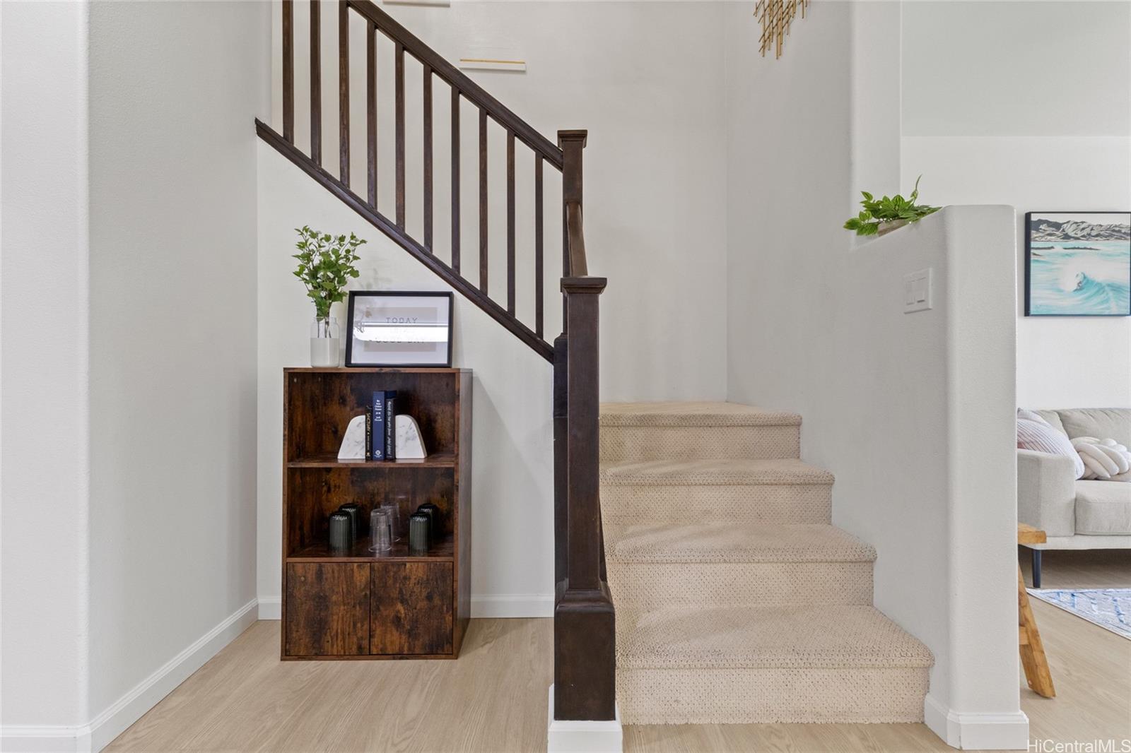 VA ASSUMABLE LOAN – 3.25% – $3580.49 PITI – ~$50K GAP : Welcome to 91-2016 Kaioli St #1902, a beautifully upgraded townhome in the highly desirable Ocean Pointe community. Perfectly situated right across from the pool with ample guest parking, this home offers everything you could ever want. Featuring a spacious open layout with central A/C, this home boasts new stainless steel appliances, brand-new cabinets, quartz countertops, luxury vinyl flooring, and stylish new fixtures. Enjoy a private gated yard, covered lanai with tropical garden views, and a conveniently attached 2-car enclosed garage. Experience the feel of single-family living without the hassle of exterior maintenance. Community amenities include a pool, jacuzzi, BBQ area, and scenic walking paths. This is a must-see!