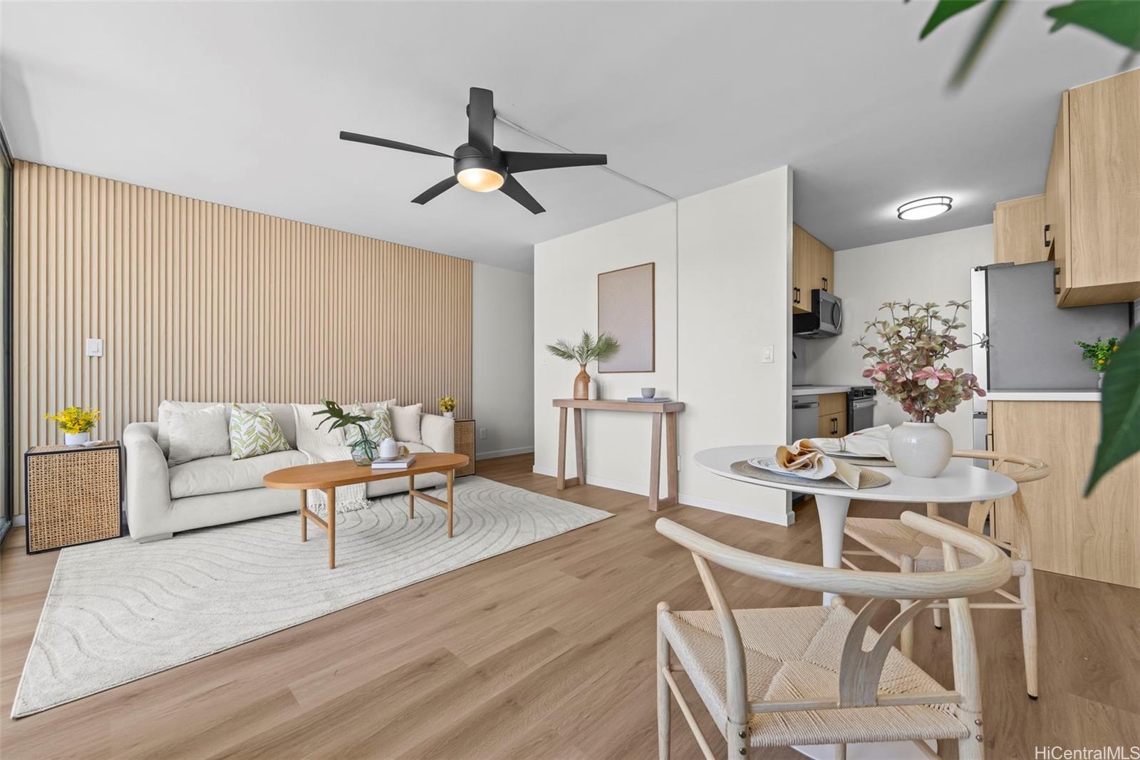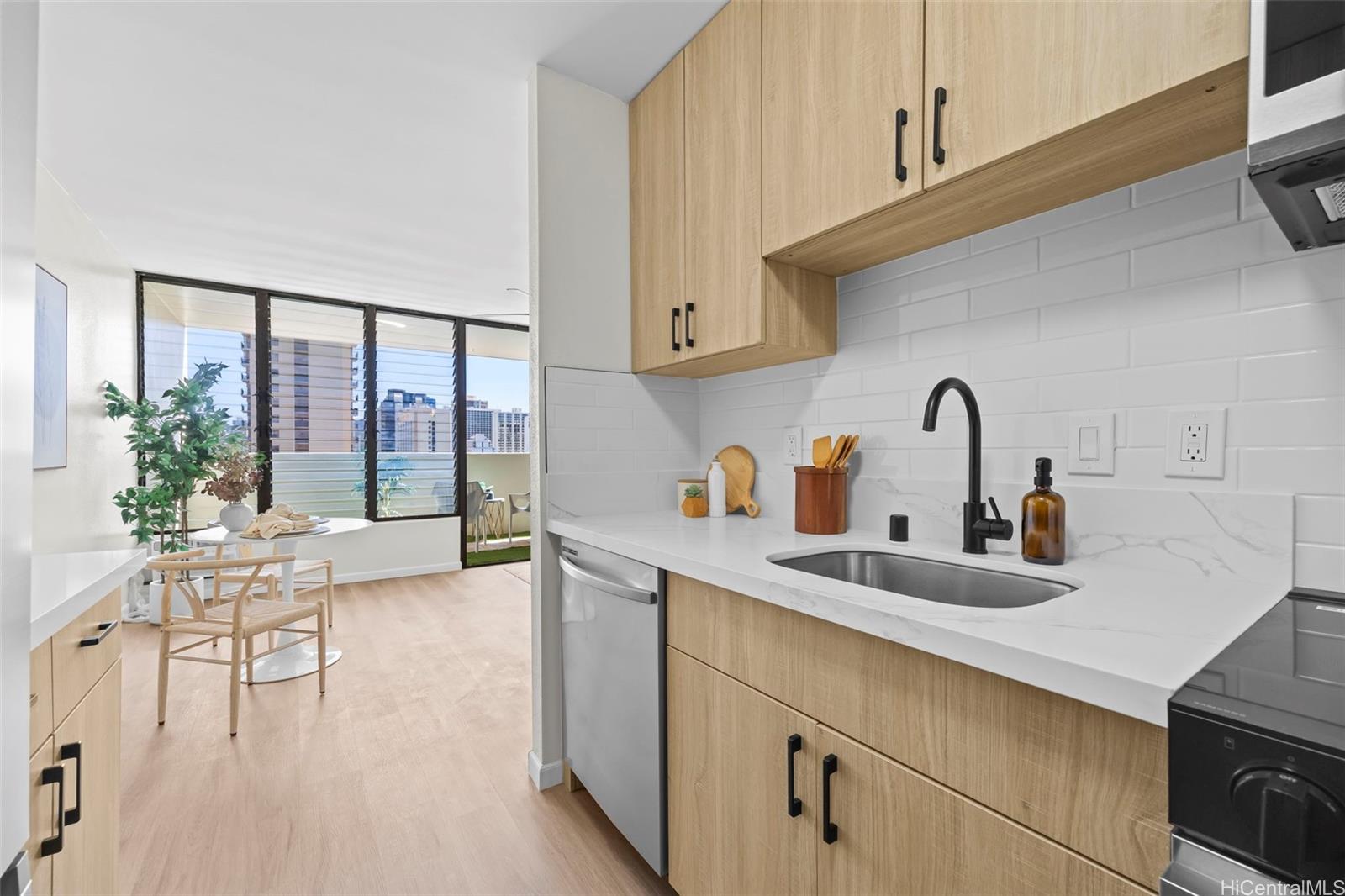 Move right into this beautifully renovated spacious 1-bedroom, 1-bathroom condo at La Casa in the heart of Waikiki, offering nearly 600 sq. ft. of modern living space and a spacious 100+ sq. ft. balcony with breathtaking ocean, city, and mountain views. Every detail has been thoughtfully remodeled, from the kitchen and bathroom to the bedroom and living areas. The unit features luxury vinyl flooring, freshly painted walls, sleek kitchen finishes with brand-new appliances, a contemporary bathroom, modernized bedroom elements, and stylish new light fixtures throughout. This turnkey condo perfectly combines comfort and style, ready for you to move in and enjoy. Additional conveniences include an in-unit washer/dryer and one secure garage parking stall. La Casa amenities include secure guest parking stalls, an on-site manager, trash chute, car wash area, loading zone, and a rooftop deck perfect for panoramic sunsets and ocean views. This building is VA-approved and pet-friendly, as well as steps from Ritz-Carlton, Cafes, Luxury Row, Hilton Lagoon, Beaches and the Best Restaurants Waikiki can offer. Don’t miss this opportunity—schedule your private showing today! Vacant & Easy to Show!