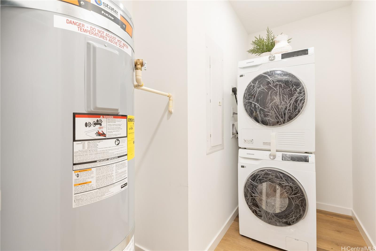 Live where you work and unwind like you're on vacation. Panoramic views, premium upgrades, and brand-new construction, move in today. Never-occupied 2-bedroom. 2-bath residence featuring stunning city, mountain, and ocean views from a 180-degree wrap around lanai with floor-to-ceiling windows. Owner invested in the upgrade pkg. $16k which includes luxury vinyl flooring in the entrance, hallways, kitchen and living room and carpet in bedrooms with motorized blinds and Toto Washlets. Includes split A/Cs in every room and a bright, open layout. Two assigned, covered, side-by-side parking stalls located near the entrance to the 6th floor.