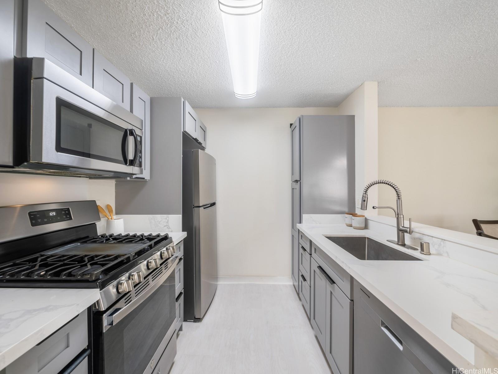 Welcome home to this beautifully updated 2nd-floor corner unit in desirable Sun Rise. This spacious residence features an open floor plan filled with natural light and excellent cross breezes. The remodeled kitchen shines with quartz countertops, soft-close cabinetry, a deep sink, and stainless steel appliances-- perfect for both everyday living and entertaining. The large primary suite offers a comfortable retreat, while the updated bathroom and new vinyl plank flooring throughout add a contemporary touch. Enjoy the convenience of two parking stalls, including one with built-in storage. Ideally located close to local shops, restaurants, and community parks offering a variety of outdoor recreation options. Next Open House Saturday, April 4th, 10am-1pm.