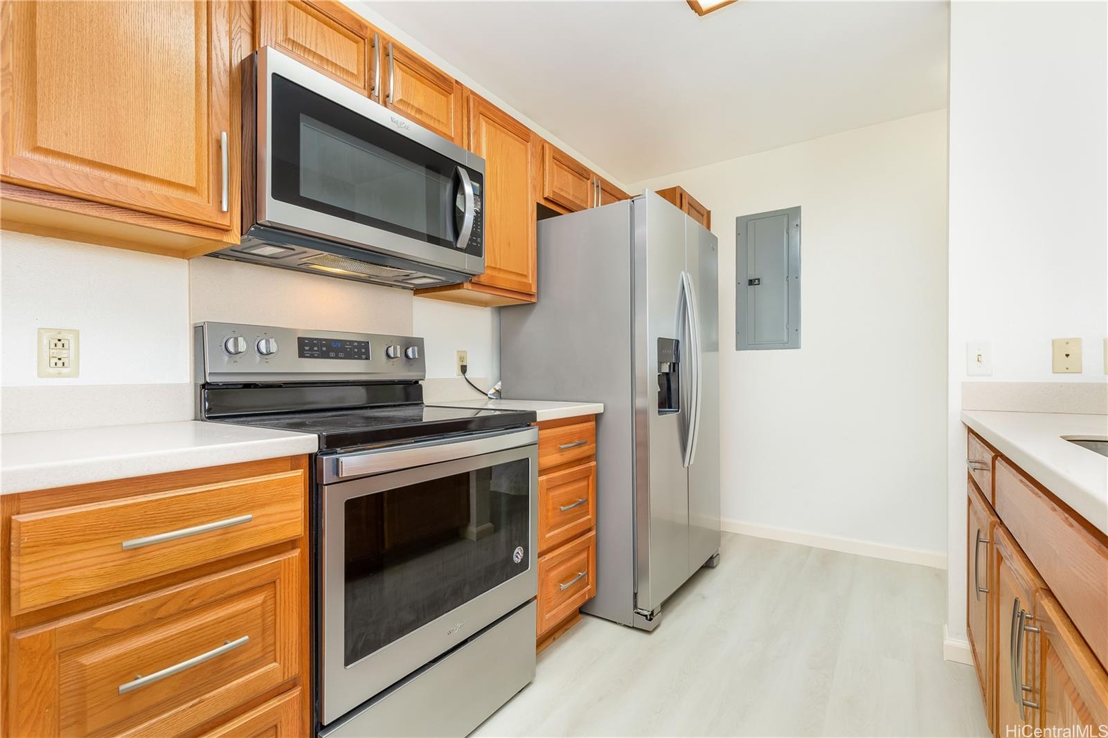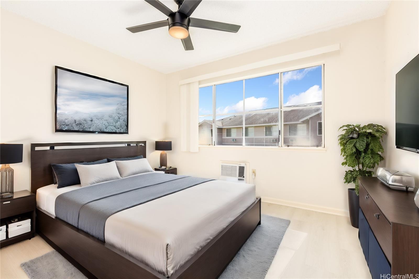 MOTIVATED SELLER and WILLING TO NEGOTIATE! 2024 new Luxury Vinyl Plank Flooring! Fresh Interior Paint! Move In Ready! What are you waiting for? Do Not Miss this rarely available 3-bedroom, 2 bath townhomes at Northpointe Terrace 1 in the highly sought after community of Mililani Mauka. This 2nd Floor, CORNER UNIT is boasting with 1001 sf of living space. Enjoy this renovated home which backs onto green space and has a beautiful park and playground just across the street from the complex entrance. The stacked washer/dryer discreetly complements the functional layout, adding convenience to daily living. Two designated parking stalls, with one right outside your door along with a guest parking beside it. Very close to Mililani Mauka Elementary and only minutes away from shopping, dining, and public transportation. Centrally located for favorable commute times and easy access to the H-2 freeway and Schofield & Wheeler military bases. Take advantage of Mililani Town Association's many amenities including recreation centers, pools, playgrounds, tennis courts, basketball courts, skate park and more!!