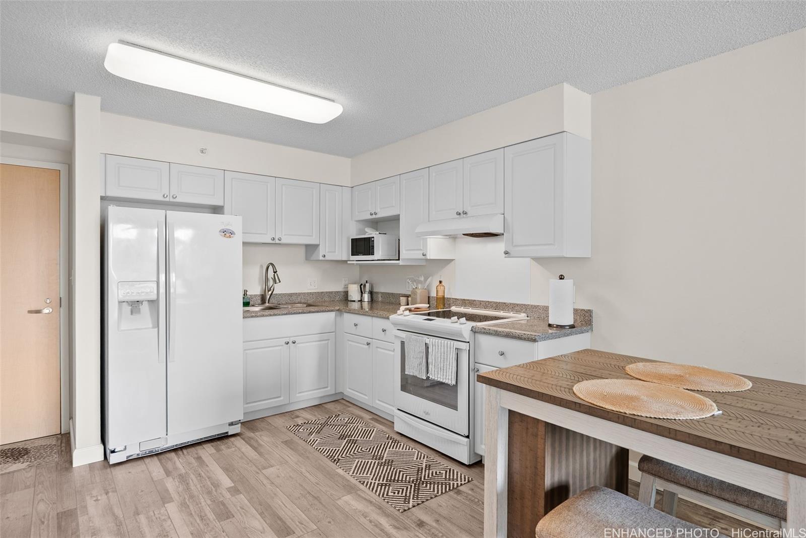 Elevate your urban island lifestyle in this highly desirable 1-bedroom, 1-bath residence in 801 South St Building B, complete with one covered, unassigned parking stall. This thoughtfully designed home features an open-concept layout with a sleek modern kitchen, brand-new waterproof luxury vinyl plank flooring, a new split A/C system, and the convenience of an in-unit washer and dryer. With exceptionally low maintenance fees, this is one of the best values in the area.
