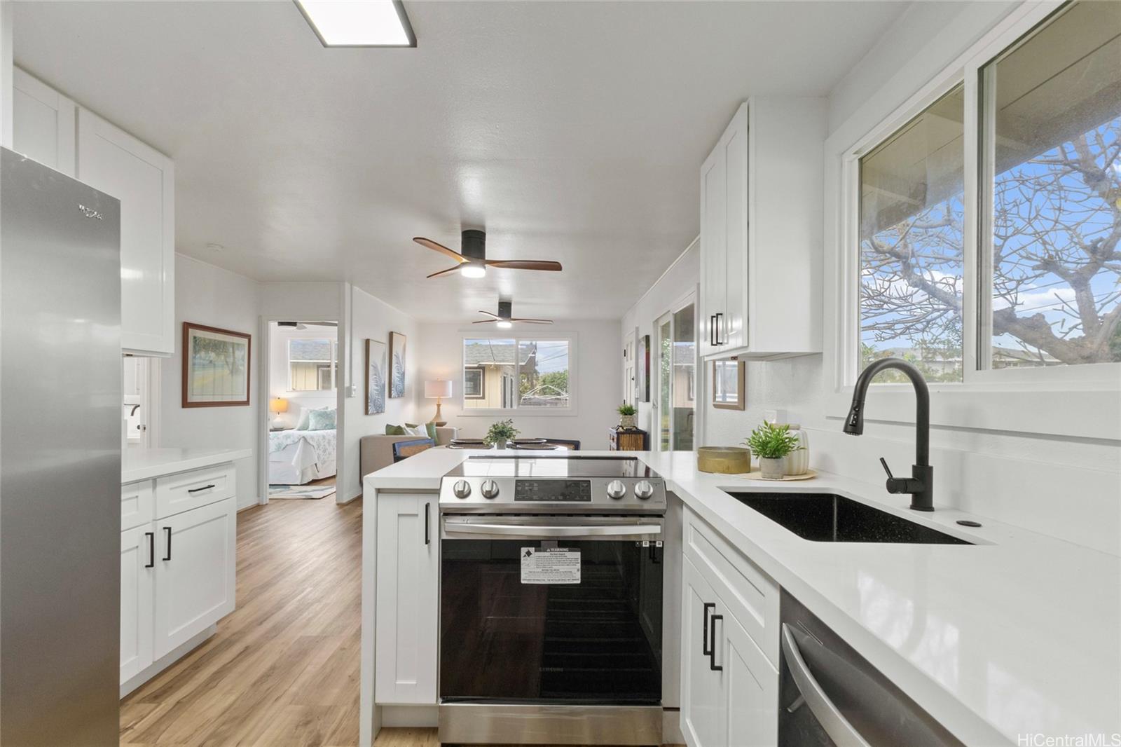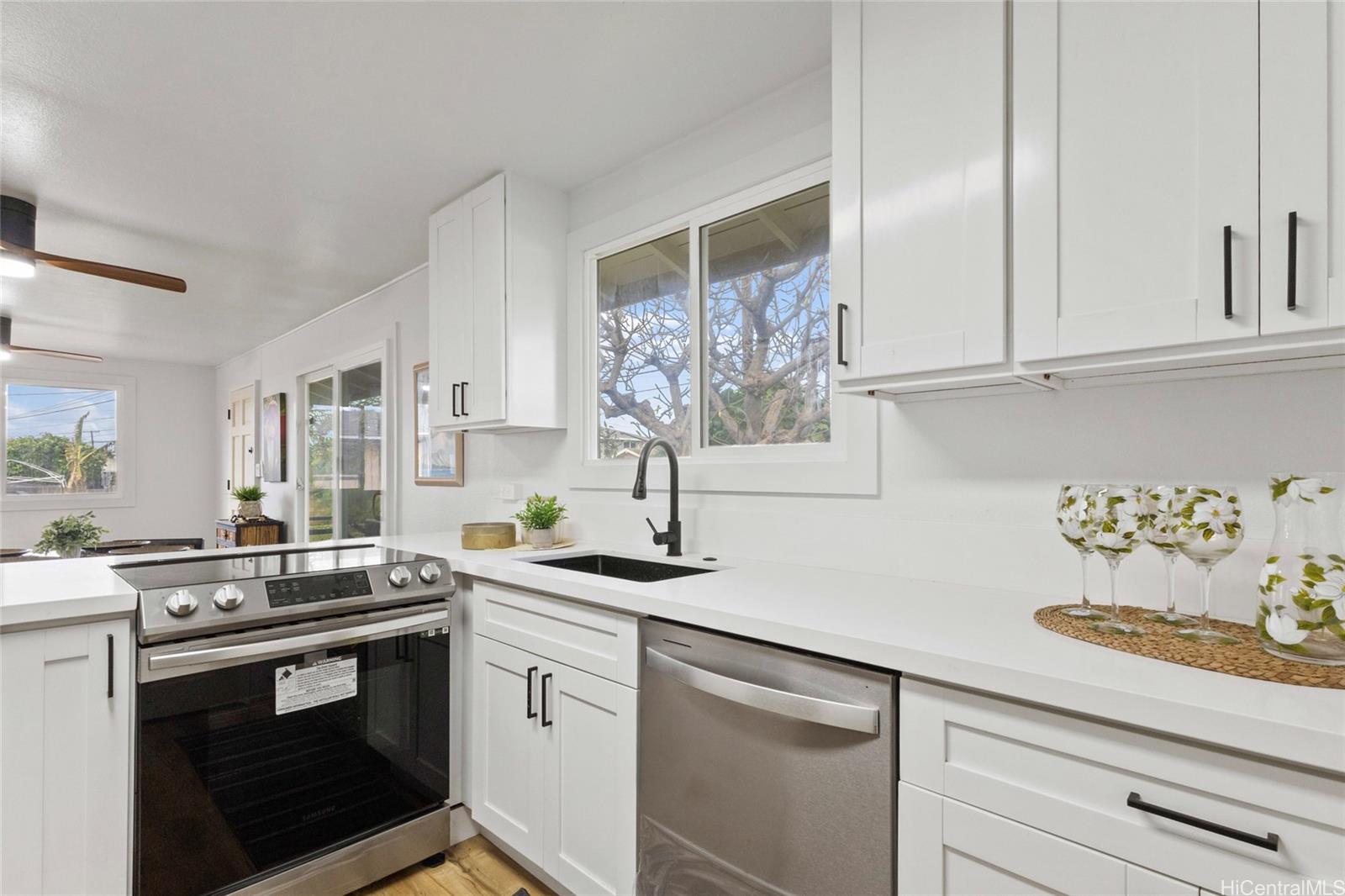 Welcome to Puuloa Beach Villas, a newly approved oceanfront CPR, featuring deeded beach access for residents. This turnkey 2bd/1ba gem is priced to sell and perfect for buyers entering a competitive housing market. In addition to the fully fenced front yard and parking in the back, you'll enjoy the prime location, with stunning beaches, fantastic restaurants, vibrant shopping centers, schools, golf courses, parks, all within close proximity. Completely renovated, this home features a brand new kitchen, bath, flooring, paint, and appliances with high quality touches throughout.