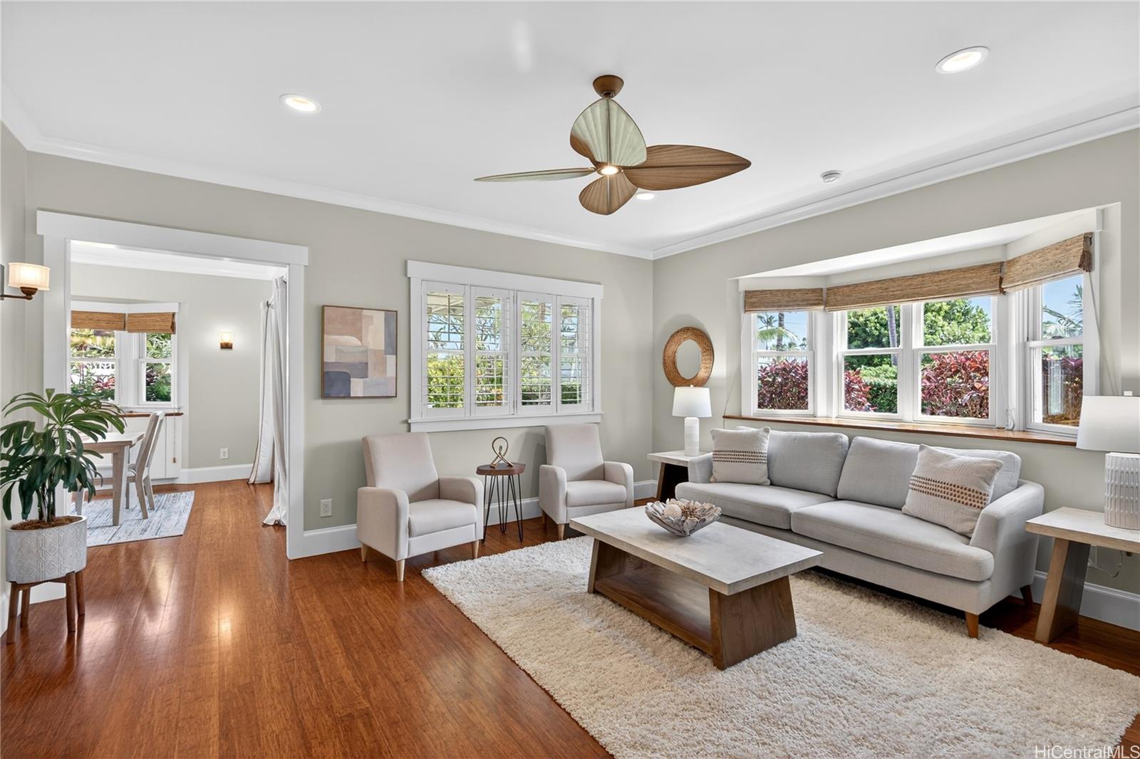 誰もが憧れるビーチサイド・カラヘオの静かな小道に佇む、LEEDゴールド認証取得済みのこの邸宅は、時代を超越した島の建築様式と先進的なデザインが見事に調和した、類まれな空間です。2014年にモクルア・ハイ・パフォーマンス・ビルダーズによって建設された5ベッドルーム、3.5バスルームの住宅は、品質、快適さ、そして持続可能性へのこだわりを反映しており、上質な堅木張りの床、精巧な木工細工、そして温かみのある控えめな優雅さを醸し出す9フィートの天井が特徴です。美しく整えられたキッチンを中心とする開放的なリビングスペースには、太陽の光と貿易風が注ぎ込みます。2階にはオーシャンビューが広がり、静かなメインの隠れ家と、用途に合わせて使い分けられるベッドルームが広がっています。専用エントランスを備えたセミデタッチドタイプの1ベッドルーム/1バスルームのコテージは、ゲストや親戚との交流に最適です。テスラ・パワーウォールを備えた太陽光発電パネルが、効率的なアイランドライフをサポートします。朝の水泳や夕暮れ時の砂浜でのんびり過ごすことが日常生活の一部となっているカイルア ビーチからほんの数歩の距離にあるこの新しいカスタム ホームは、洗練された海辺の暮らしを体験できる貴重な機会を提供します。
