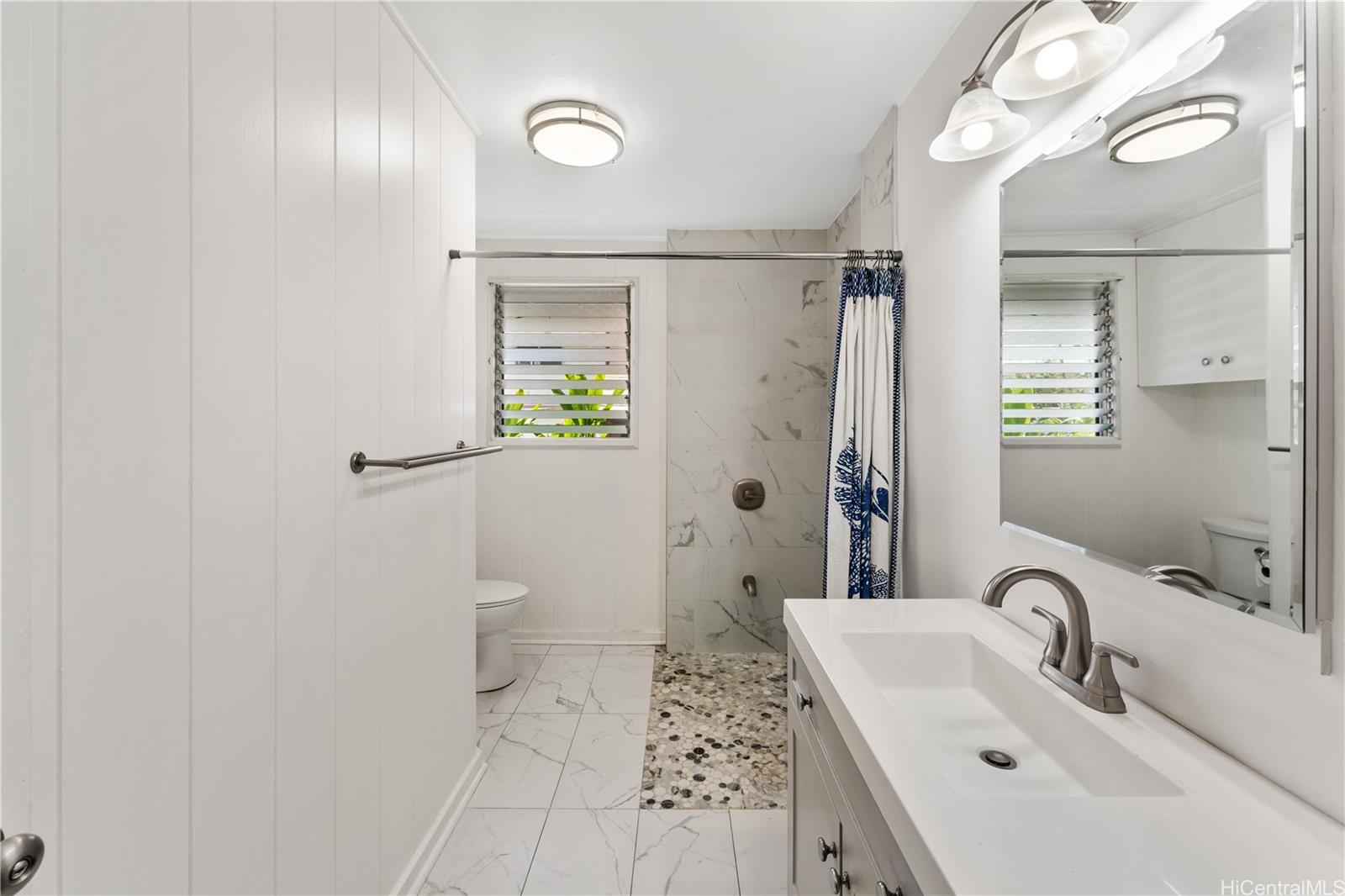 There’s plenty of space to enjoy both inside and out, including a 2-car carport and additional room in the driveway for two more off-street parking spots. The fully fenced backyard is great for pets, relaxing, or entertaining. The location is hard to beat, with quick access to town and nearby freeway entrances and off-ramps. The home is very quiet — something you really have to experience in person to appreciate. This well-maintained home offers a great combination of comfort, convenience, and privacy in a central Honolulu location. First Open House this Sunday, 2-5pm!