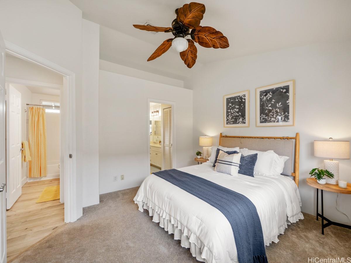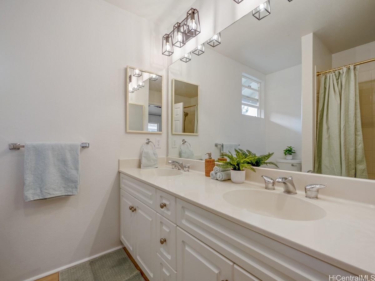 シーカントリーへようこそ。明るく、すぐに入居可能な3ベッドルーム、2バスルームの一戸建て住宅は、快適さ、効率性、利便性を完璧に融合させた物件です。静かな袋小路に佇む、塗り替え済みの2階建て住宅は、リフォーム済みのフローリング、新しいステンレス製の家電、モダンなキッチンとバスルームを備えています。広々としたオープンコンセプトのリビングエリアからは、緑豊かな造園とスプリンクラーシステムを備えた、手入れの手間がかからないプライベートな庭へと続きます。ベランダからは山と夕日の絶景をお楽しみいただけます。さらに、22枚のリースソーラーパネルと2つのテスラバッテリーが電気代を節約し、安心の暮らしを実現します。2台分のガレージは十分な収納スペースを提供し、マイリビーチパーク、近隣のハイキングコース、シーカントリーのショップやコミュニティパークまでわずか数分です。低料金のHOA(住宅所有者管理組合)費、ペットフレンドリーな地域、そして強いコミュニティ意識を備えたこの住宅は、西オアフの暮らしの醍醐味を体現しています。