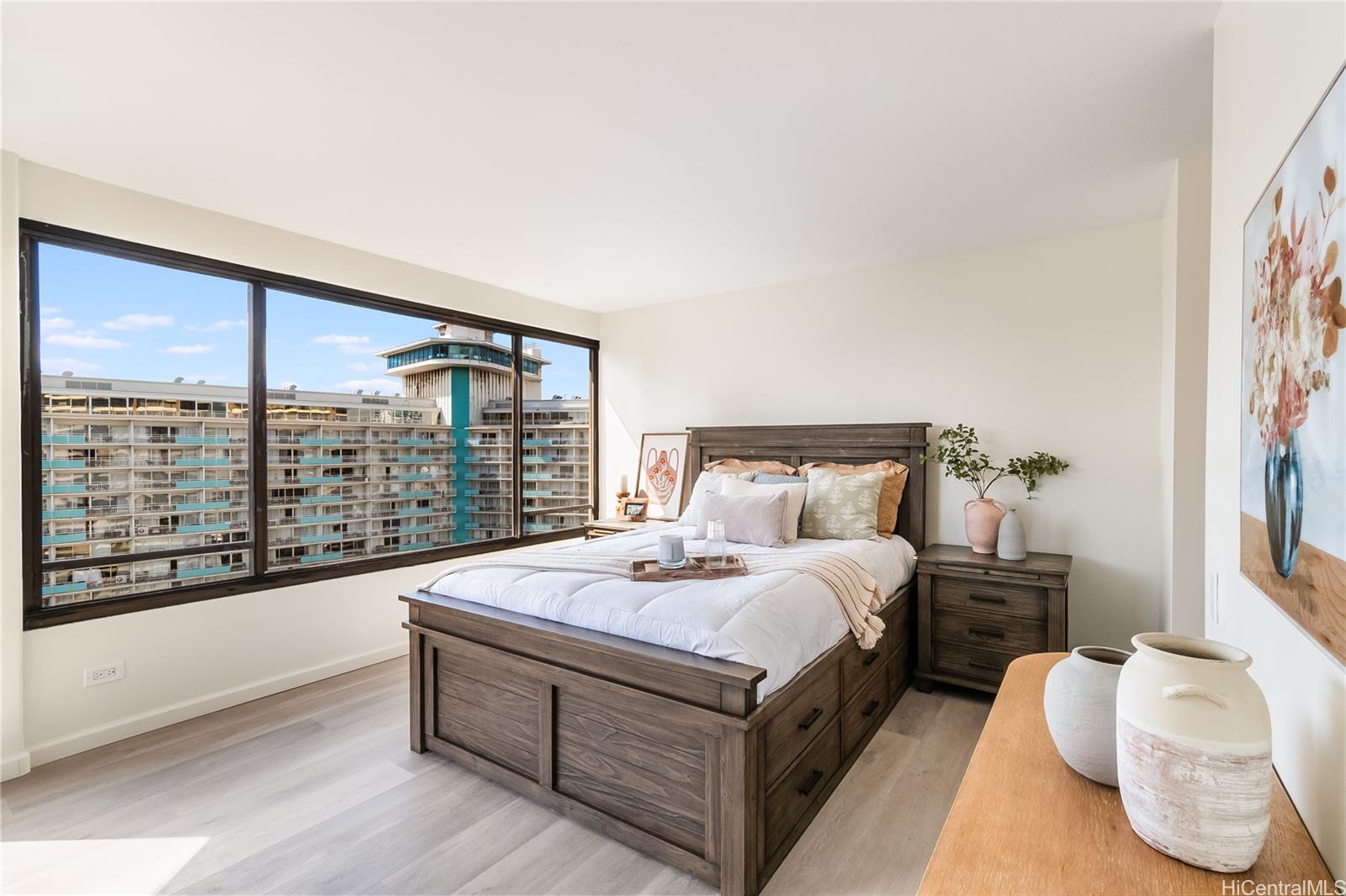 positioned perfectly on the Ala Moana end of Waikiki. This high-rise residence features updated vinyl flooring, renovated kitchen, spacious layout, and stunning views. Discovery Bay delivers an enviable lifestyle where everything you need is just steps away. Short distance to world-famous Waikiki Beach, the Hilton Hawaiian Village lagoon, and legendary surf breaks. Ala Moana Center's premier shopping and dining are moments from your door, while Waikiki's vibrant restaurant scene provides endless exploration opportunities. Resort-style amenities include outdoor pool, whirlpool, fitness rooms, BBQ patio, sun deck, secured entry with 24-hour security, and on-site management. Whether seeking a primary residence, investment property, or vacation retreat, this is your opportunity to own in one of Honolulu's most desirable addresses where island living meets urban sophistication. Experience the Discovery Bay lifestyle today! *** Have your Realtor call to chat about FREE temp. rate buy down.***