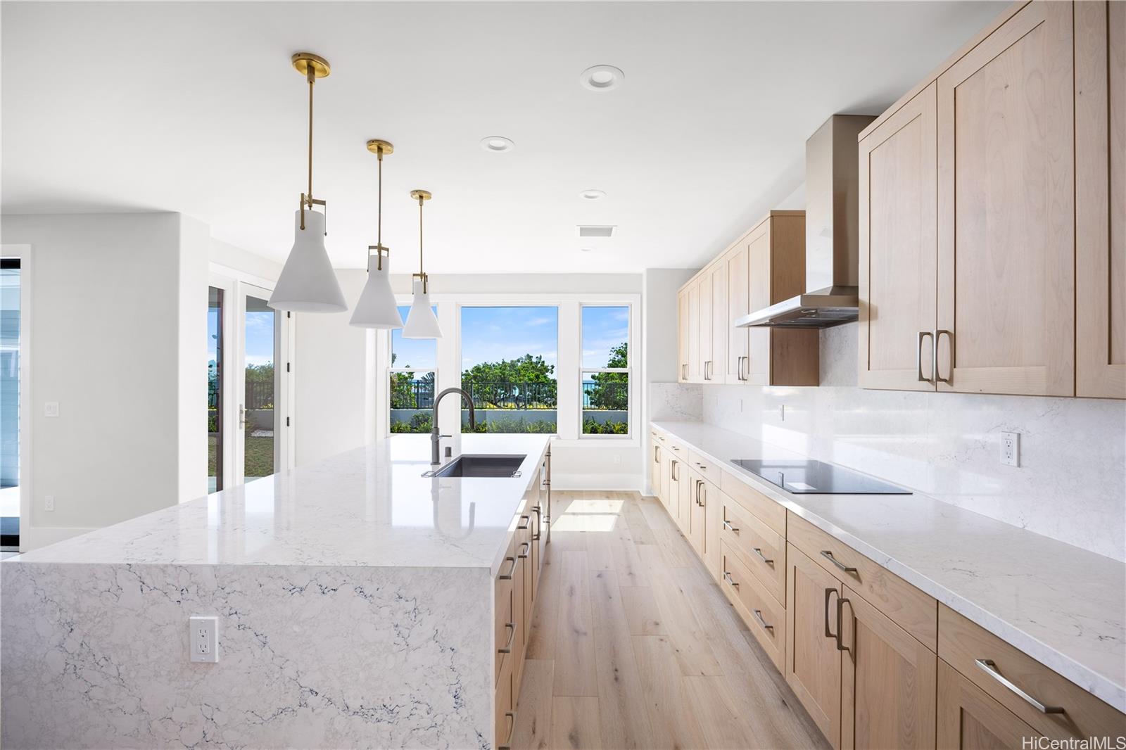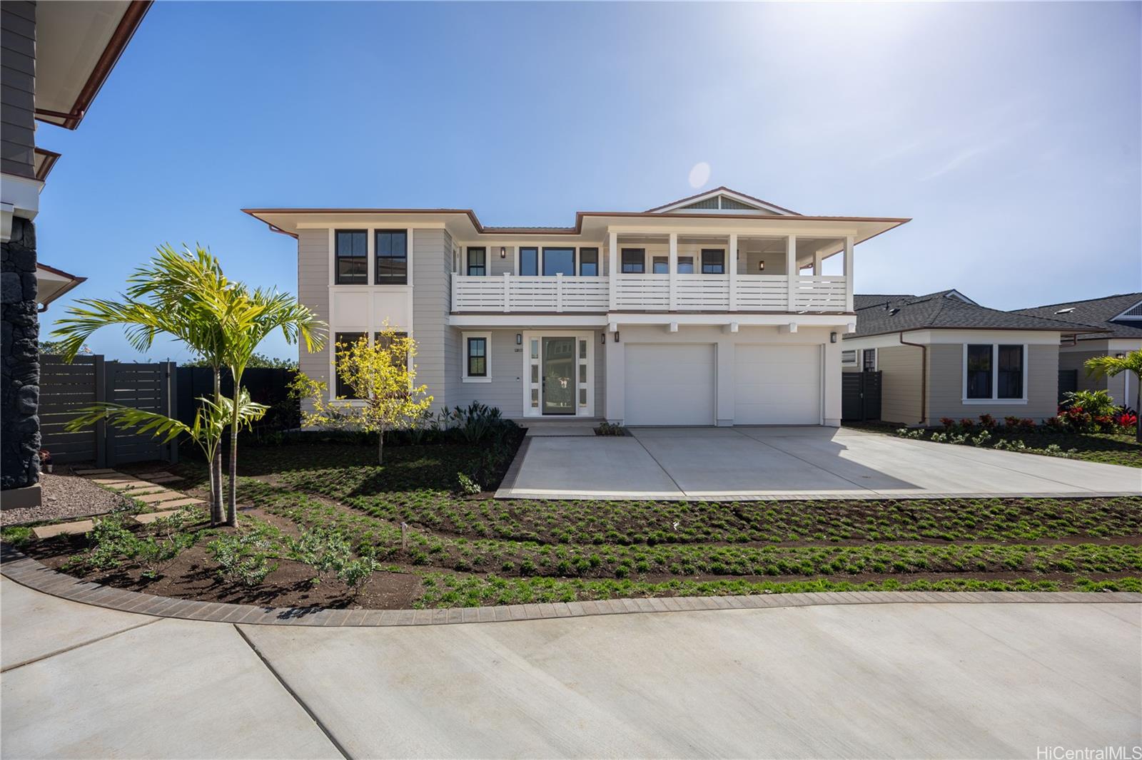 Step into coastal luxury with this expansive new construction residence, offering over 4,000 square feet of beautifully designed living space. With five bedrooms, four-and-a-half baths, a dedicated study, a covered lanai, and a private courtyard, this home seamlessly blends functionality with sophistication—perfect for both peaceful retreat and vibrant entertaining. Enjoy sweeping ocean views and a full suite of elevated features, central air conditioning, solar water heater, accommodations for a photovoltaic solar electric system and EV charger. The gourmet kitchen is thoughtfully appointed with top-tier appliances: a 42” built-in Sub-Zero refrigerator, Wolf induction cooktop, convection oven, microwave with drop-down door, and an Energy Star-certified Bosch dishwasher—all designed for culinary excellence. Professionally landscaped yards with automatic irrigation offer low-maintenance spaces to relax and enjoy the breeze. Lot 96 - 75.20 AR floorplan Kekainani at Hoakalei | One of the final 32 luxury residences in the prestigious Kuapapa neighborhood.