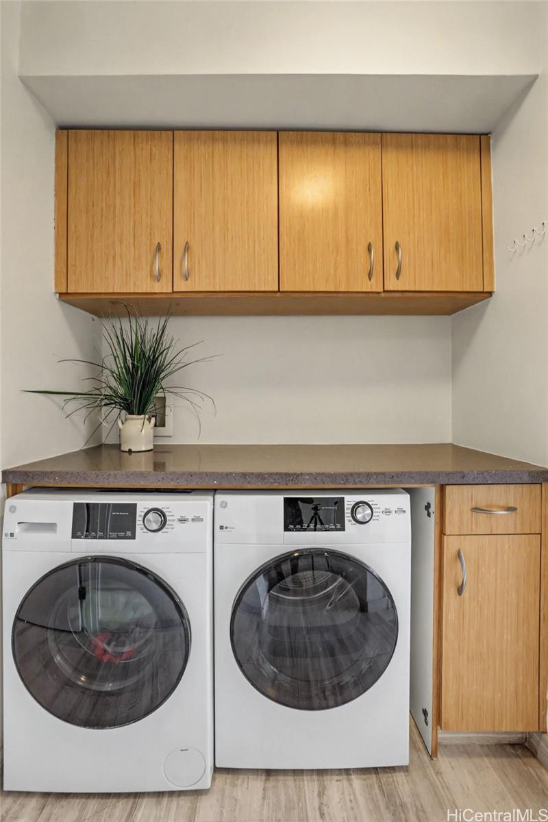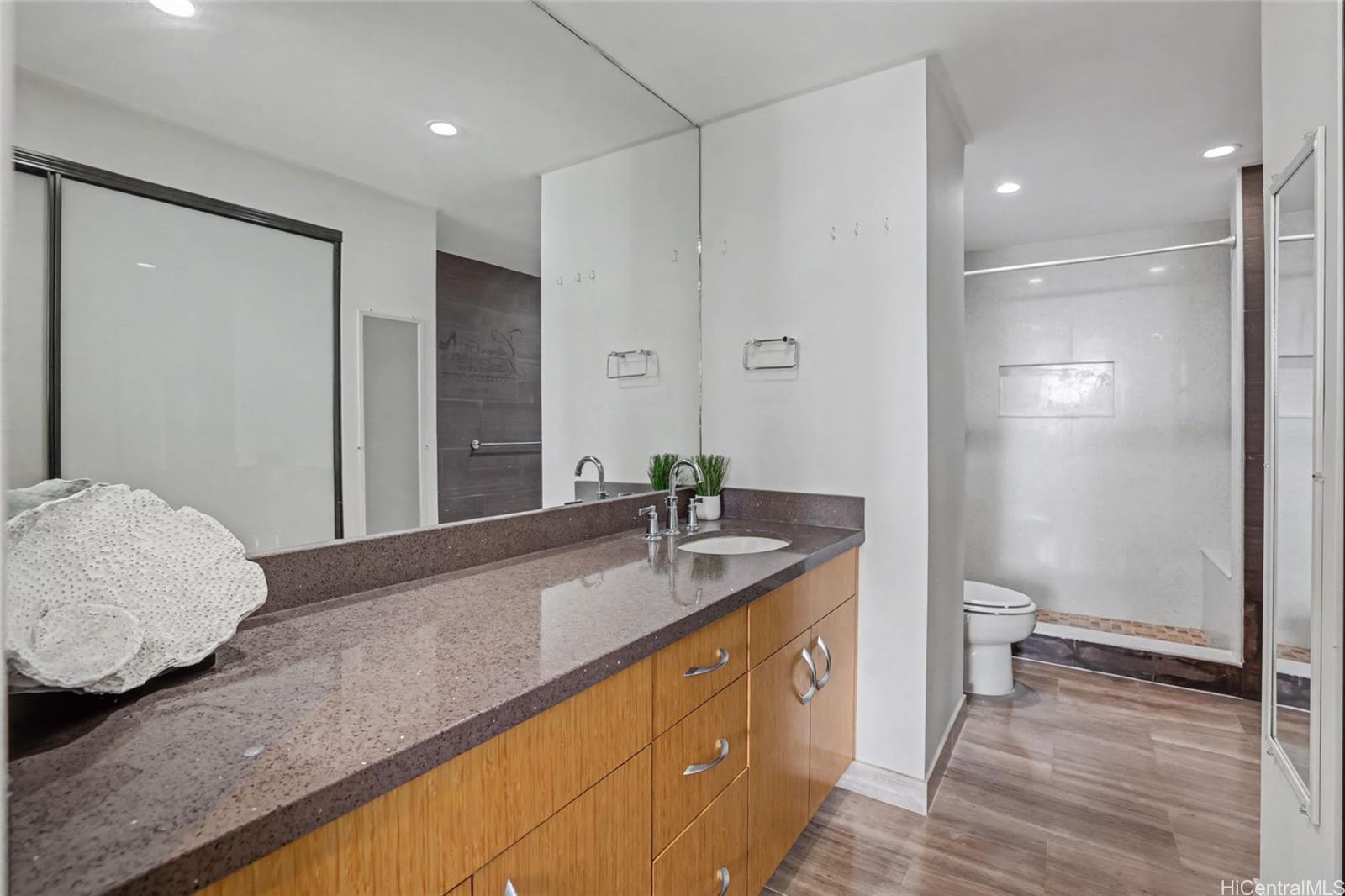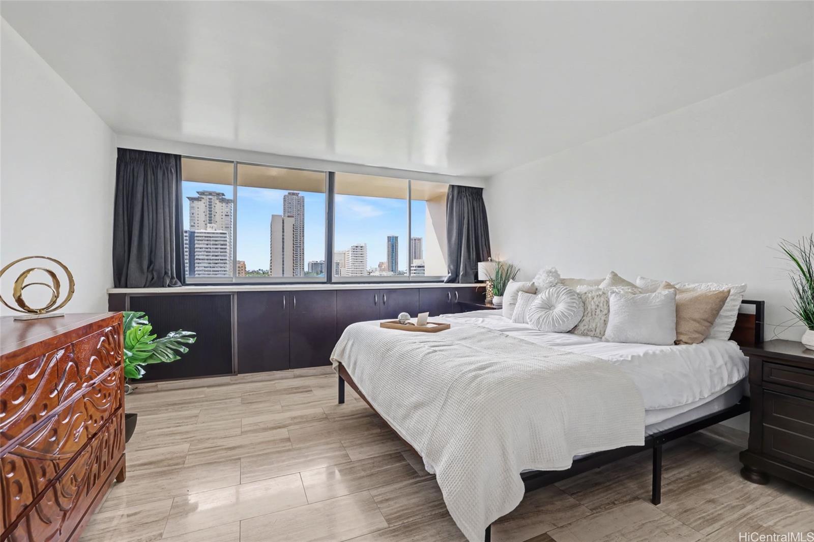 アラワイプラザへようこそ。広大な公園と運河の眺望が、眼下に広がるワイキキの象徴的なスカイラインと揺れるヤシの木と交わる絶景のロケーションです。美しく改装されたこの2階建てのレジデンスは、1,500平方フィートを超える広々とした室内空間を誇り、壮大な景色を額縁のように切り取る印象的なガラス張りの壁が、室内を自然光で満たします。格納式シェード付きの天窓パネルと滑らかな天井が、モダンな美しさを際立たせています。スキップフロア設計により、快適な住まいの快適さと、垂直方向の生活の利便性と安全性を実現しています。山から海へと吹き抜ける心地よい風が、窓用エアコンでさらに快適にお過ごしいただけます。モダンなキッチンには、サーマドール製の冷蔵庫とコンロ、そしてスタイリッシュなゼファー製レンジフードが備えられています。2階には3つの広々としたベッドルームがあり、うち2つからは素晴らしい景色が望め、3つ目のベッドルームからは緑豊かな山並みと虹を眺めることができます。フルサイズの洗濯機と乾燥機、屋根付き駐車場も完備しています。ペット可、24時間警備、プール、フィットネスセンター、バーベキューエリア、自転車・サーフボード置き場、洗車場完備。ハワイ大学マノア校、ビーチ、アラモアナショッピングセンター、ワイキキにも近い。