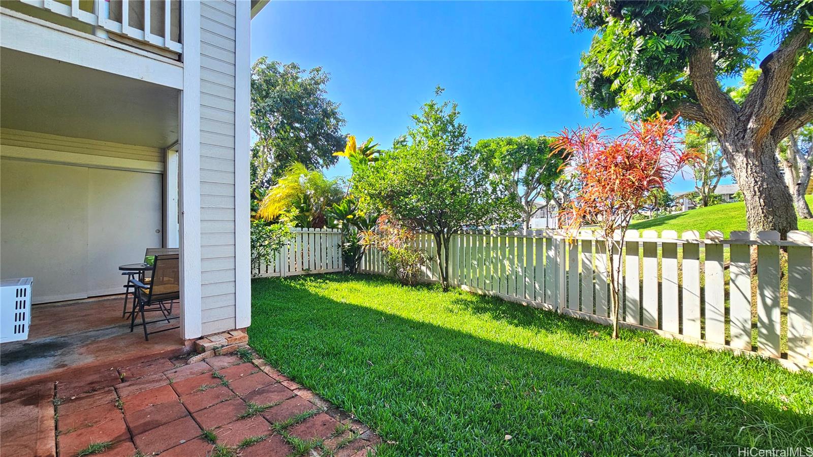 A rare opportunity for comfort and convenience! Welcome home to this ground-floor, single-level corner residence featuring 2 bedrooms and 2 bathrooms. Enjoy a spacious, beautifully maintained backyard—perfect for unwinding after a long day or hosting memorable gatherings with family and friends. The home offers tiled flooring for easy maintenance, a bright and breezy interior, and two conveniently located parking stalls. Pet friendly and well managed complex. Located in a highly desirable community, this property is just minutes from Waikele Shopping Center, golf courses, schools, parks, dining, and entertainment. Costco is nearby, and freeway access in both east- and west-bound directions makes commuting a breeze. This home truly has it all—schedule your private showing today and see it for yourself! Some photos have been enhanced. Saturday 2-6p and Sunday 1-6p Open House.