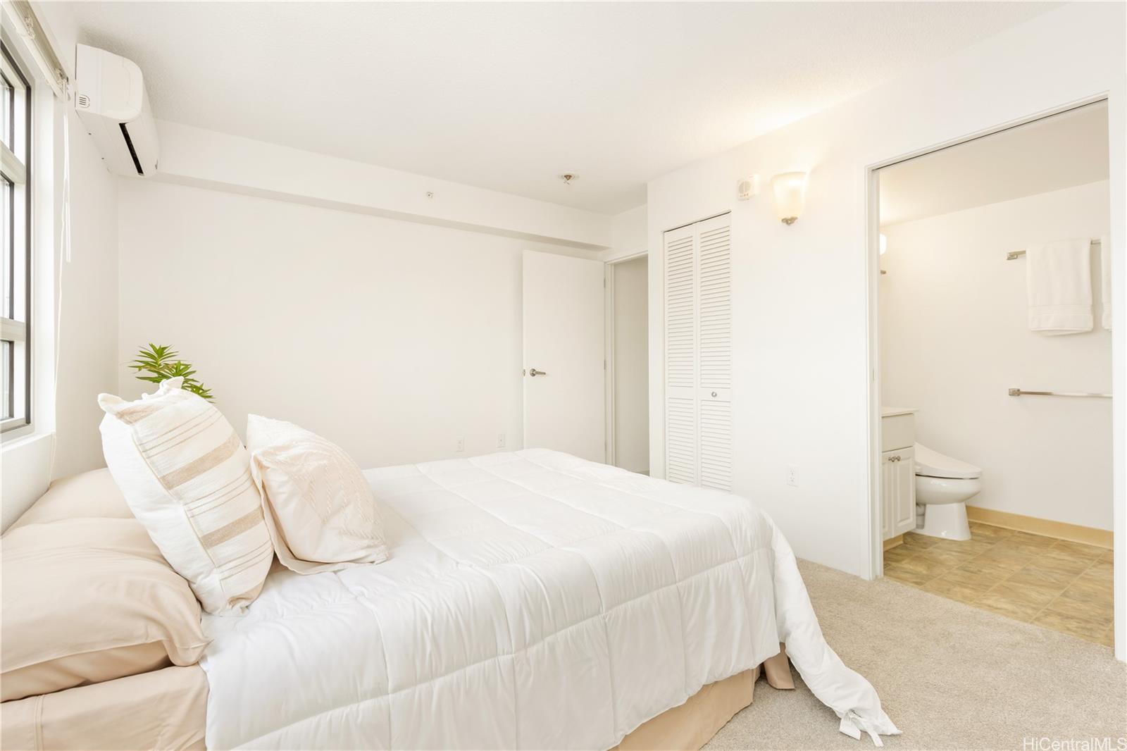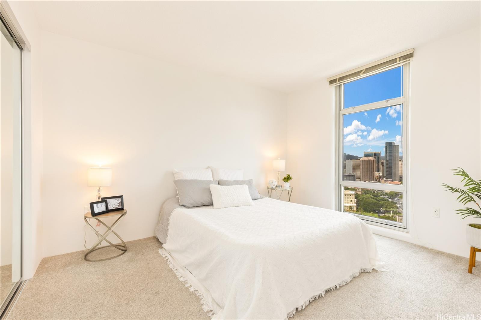 Experience the best of urban island living at 801 South Street, ideally situated in the heart of vibrant Kaka'ako. Enjoy the sweeping city and mountain views that showcase Honolulu's dynamic skyline! This 2-bedroom, 2-bath residence stands out with the added benefit of two parking spaces—a true advantage in town and a feature not often found in comparable units. Inside, the home is turnkey and inviting, featuring freshly painted interior, carpet, the refrigerator, and washer/dryer unit were installed in 2025 and create a clean, modern feel. The split A/C system keeps the living areas comfortable year-round. Residents enjoy the confidence of a well-operated, fully insured building that is VA and FHA approved, with reasonable maintenance fees that enhance overall value. Amenities include 24-hour security, a stylish Wi-Fi-enabled lounge and lobby, recreation room, bike and surfboard storage, EV charging stations, and ample guest parking. You’re moments away from Downtown, Ward Village, the SALT District, beaches, farmers markets, cafés, and some of Honolulu’s most popular dining and shopping destinations. Kaka'ako’s blend of art, culture, and coastal energy is right outside your door.
