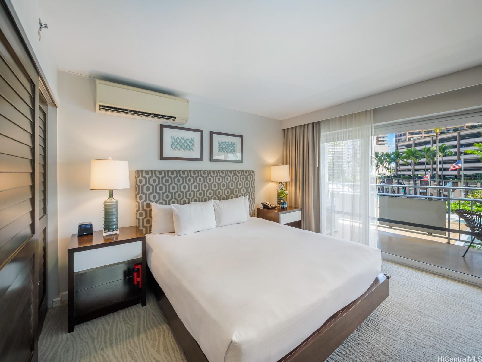 Step into Waikiki’s most iconic address — the Ilikai Hotel. Unit 213 presents an opportunity to own a beautifully renovated studio in this legendary hotel, famously featured in the opening of the original Hawaii Five-O. With 448 interior square feet and a spacious 118-square-foot covered lanai, the residence feels bright and inviting, capturing city and mountain views that come alive at night. Renovated in 2016 to a luxury standard, the unit features a full kitchen and bath, modern finishes, and turn-key comfort. The Ilikai itself elevates daily life with world-class amenities: two pools, jacuzzis, lushly landscaped grounds, on-site shopping, and celebrated dining. Its unique hotel-condo structure allows for nightly rentals, either managed privately or through the hotel, offering both flexibility and strong investment potential. Designed by John Graham, Jr., the architect of Seattle’s Space Needle, the Ilikai remains a symbol of timeless Hawaiian style at the gateway to Waikiki. For the out-of-state owner seeking a pied-à-terre with income potential, or the investor drawn to high-end hospitality, Unit 213 is a smart opportunity at one of Honolulu's most enduring addresses.