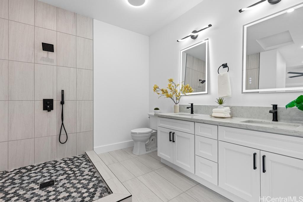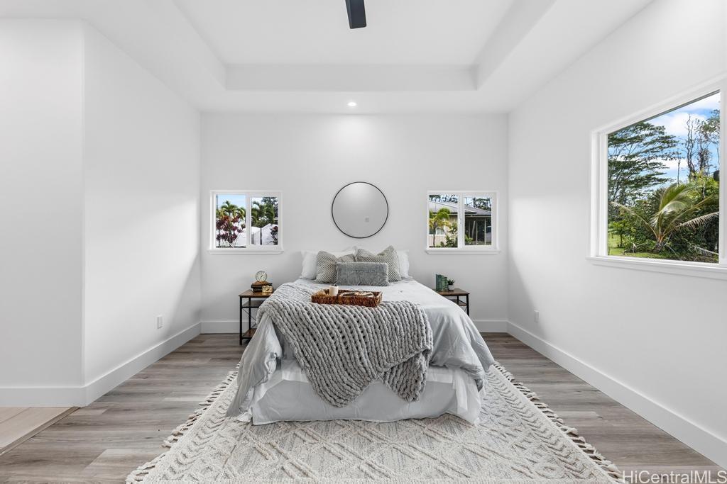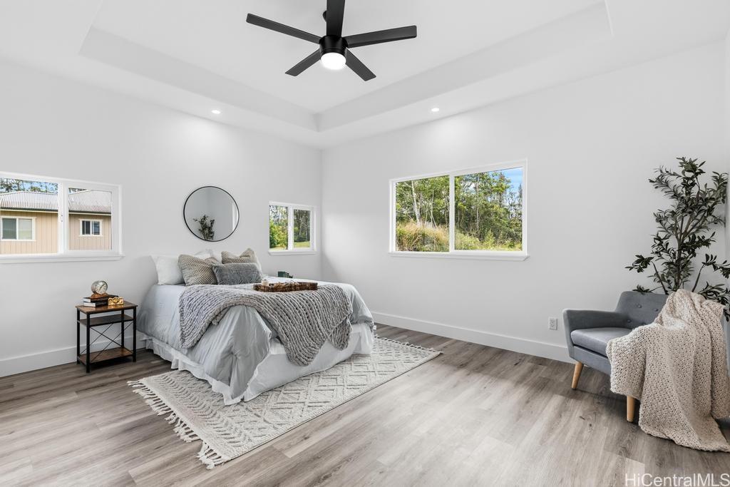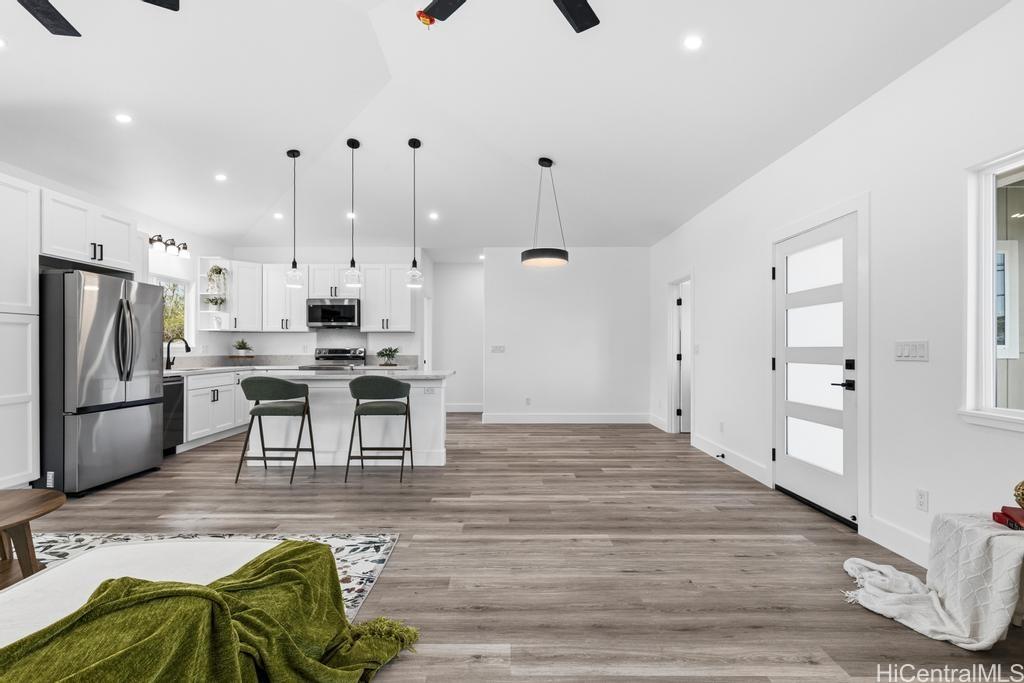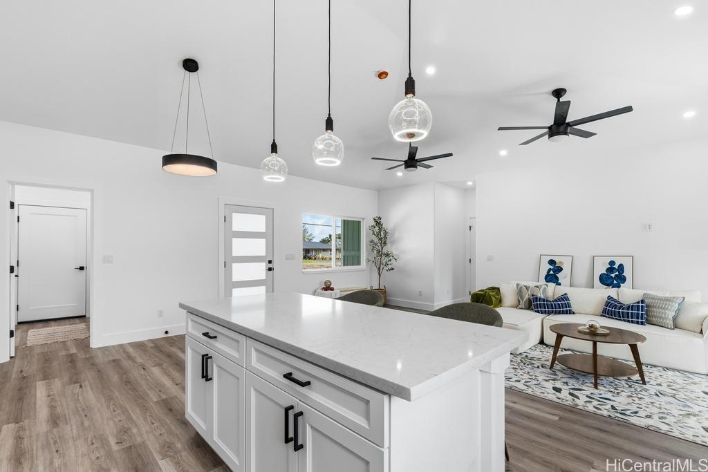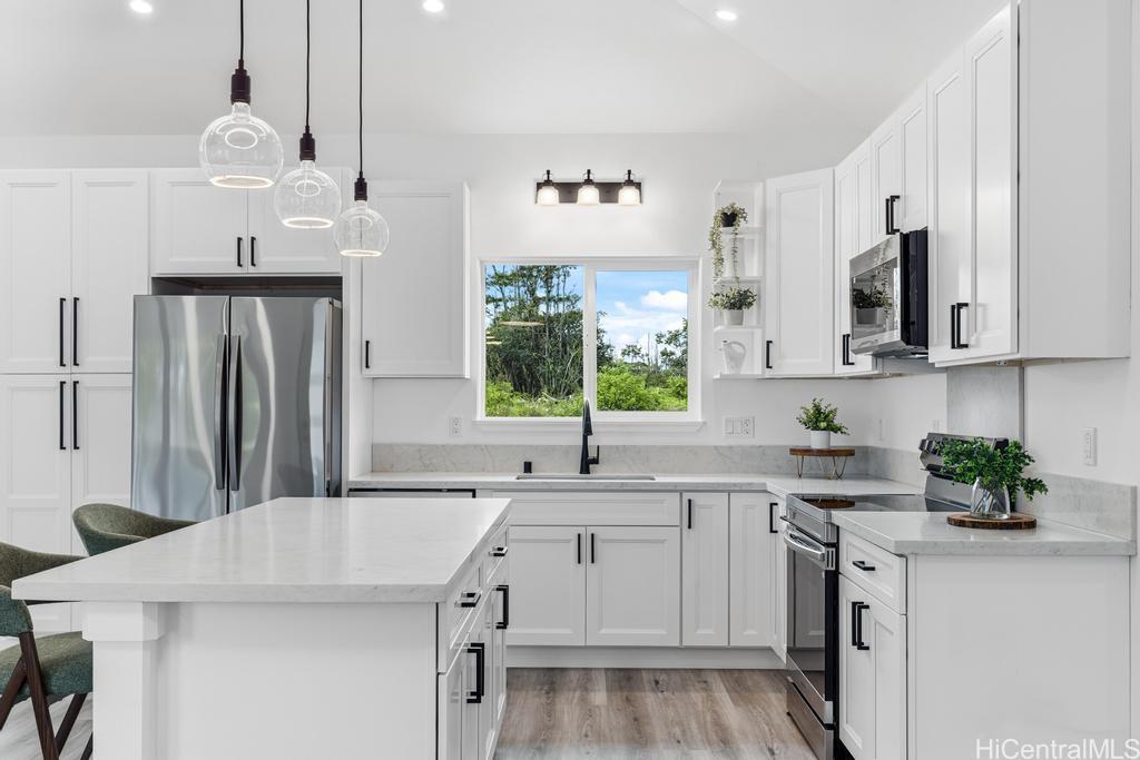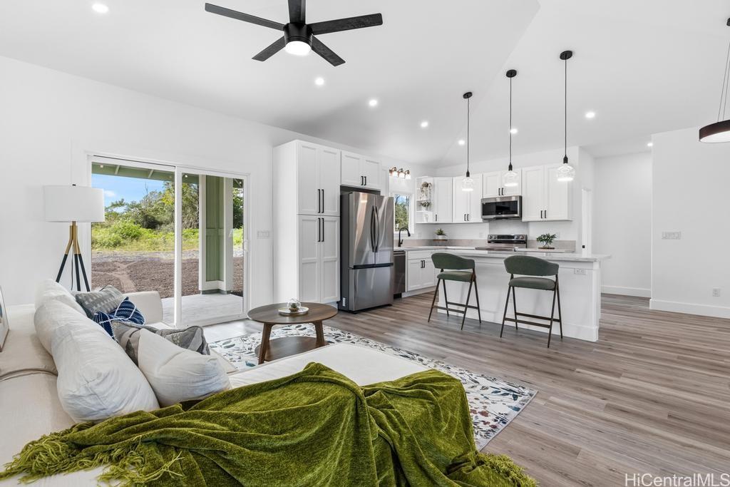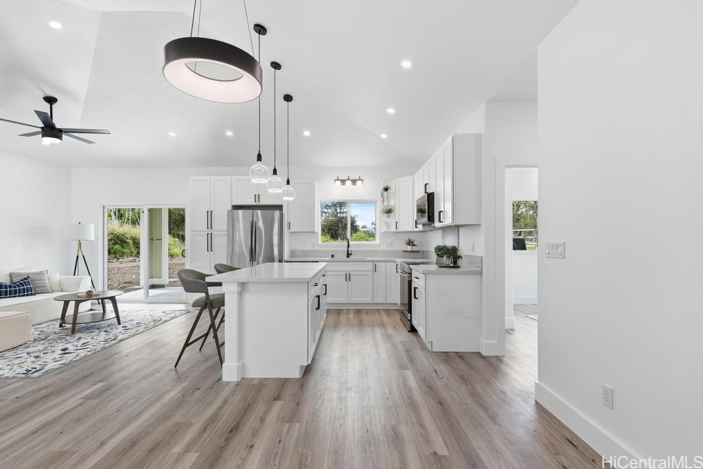ハワイアン パラダイス パークの 1 エーカーの敷地に建つ、広々とした 2 台用ガレージ付きの新築 3 ベッドルーム、2 バスルームの住宅で、モダンなデザインとアイランド ライフの完璧な融合をご体験ください。コンクリートの私道と新緑の庭園が、心地よい第一印象と魅力的な外観を演出します。家に入ると、光が差し込むオープン コンセプトのリビング スペースが広がり、シームレスな流れが生まれます。キッチンは機能的でありながら美しく、クォーツのカウンタートップ、ペンダント ライト付きの広々としたアイランド、特大のシンク、真新しいステンレス製の電化製品を備えています。ガラスのスライド ドアを開けると屋根付きのベランダと広々とした裏庭があり、屋内と屋外を気軽に行き来できます。設備の整ったランドリー ルームには、洗濯機、ユーティリティ シンク、豊富なキャビネットが備え付けられており、さらに収納スペースのある特大ガレージに直接アクセスできます。2 つのゲスト ベッドルームは、タイル張りのバスタブの周囲とモダンな照明付きミラーを備えた美しく仕上げられたゲスト用バスルームの近くにあります。家の反対側の棟にプライベートに位置する主スイートは非常に広く、ダブル洗面台、照明付きミラー、特大のオープンコンセプトのウォークイン シャワー、ウォークイン クローゼットを備えたスパ風のバスルームが備わっています。