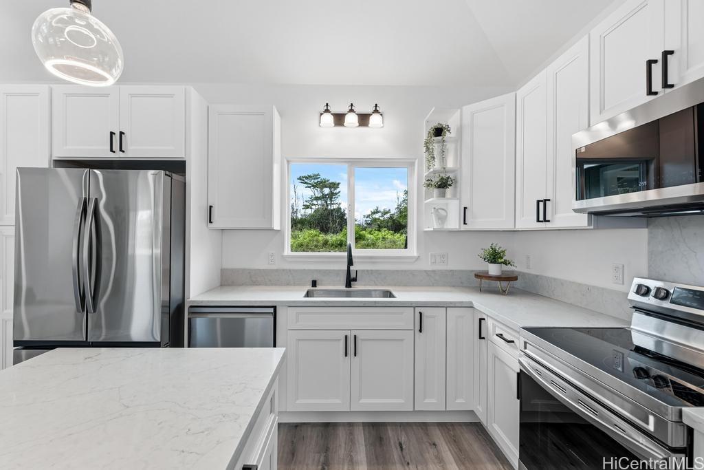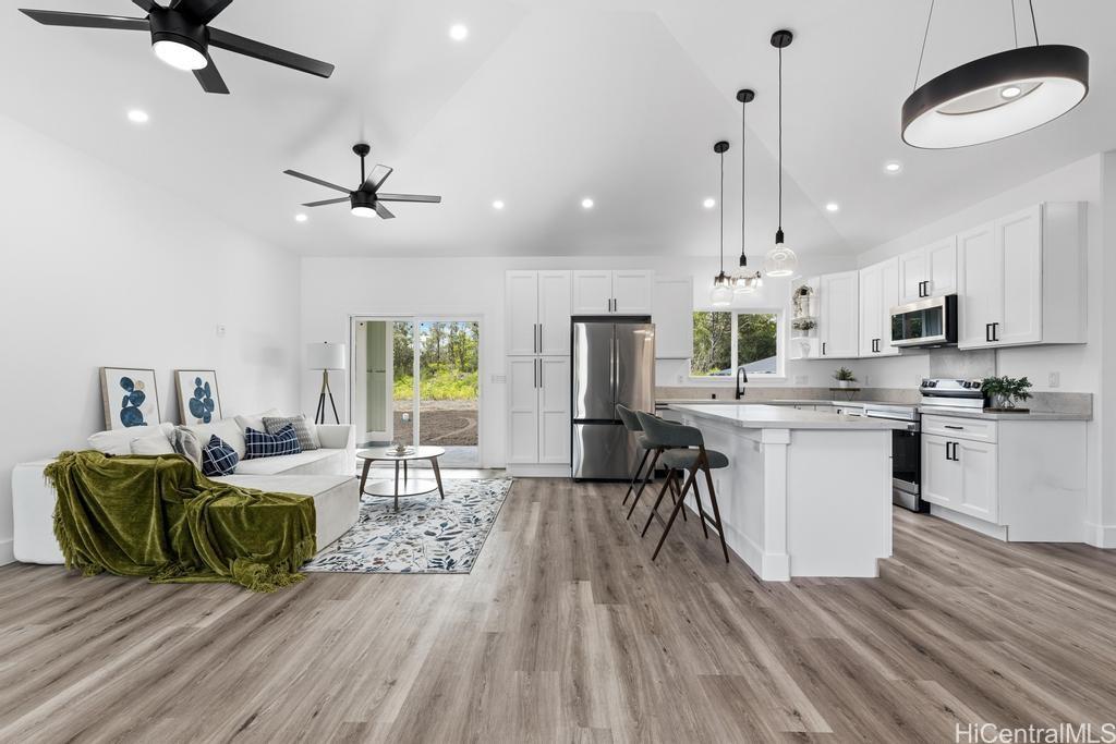 Experience the perfect blend of modern design and island living in this newly built 3 bed, 2 bath residence with a spacious two car garage, set on a full acre in Hawaiian Paradise Park.