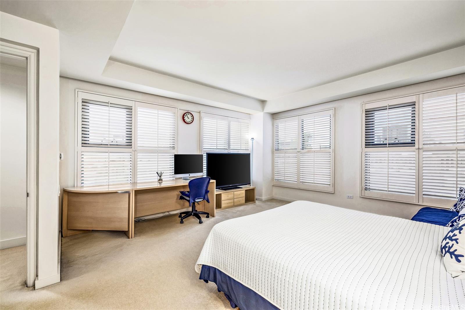 約2,000平方フィートの室内居住空間を誇る、手入れの行き届いたクイーン・ビクトリア・レジデンスの「03」ユニットは、他に類を見ない物件です。2ベッドルームの間取りとしては最大規模を誇り、フロアにわずか2戸しかないユニットのうちの1つである303号室は、抜群の広さとプライバシーを提供します。優雅な玄関ホールから続くのは、ビルトインデスク、広々としたウォークインパントリー、Sub-Zero/Miele製家電を備えた、考え抜かれたデザインのキッチンです。2つの広々としたベッドルームスイートは、レジデンスの両端に配置され、プライバシーと静寂を確保しています。十分なゲスト用駐車場と玄関ホール横の専用ハーフバスルームで、ゲストをもてなすのも簡単です。ユニット全体に巧妙に配置されたクローゼットが多数あり、収納スペースも豊富です。セントラル空調とスプリンクラー設備により、快適で安心な暮らしを実現します。セキュリティ完備のフルサイズ駐車場2台分と専用収納ユニットが含まれています。クイーン・ビクトリア・レジデンスは、ローマ風のプール、フィットネスルーム、ミーティングスペースなど、リゾートスタイルのアメニティを備えた、定評のある高級マンションです。