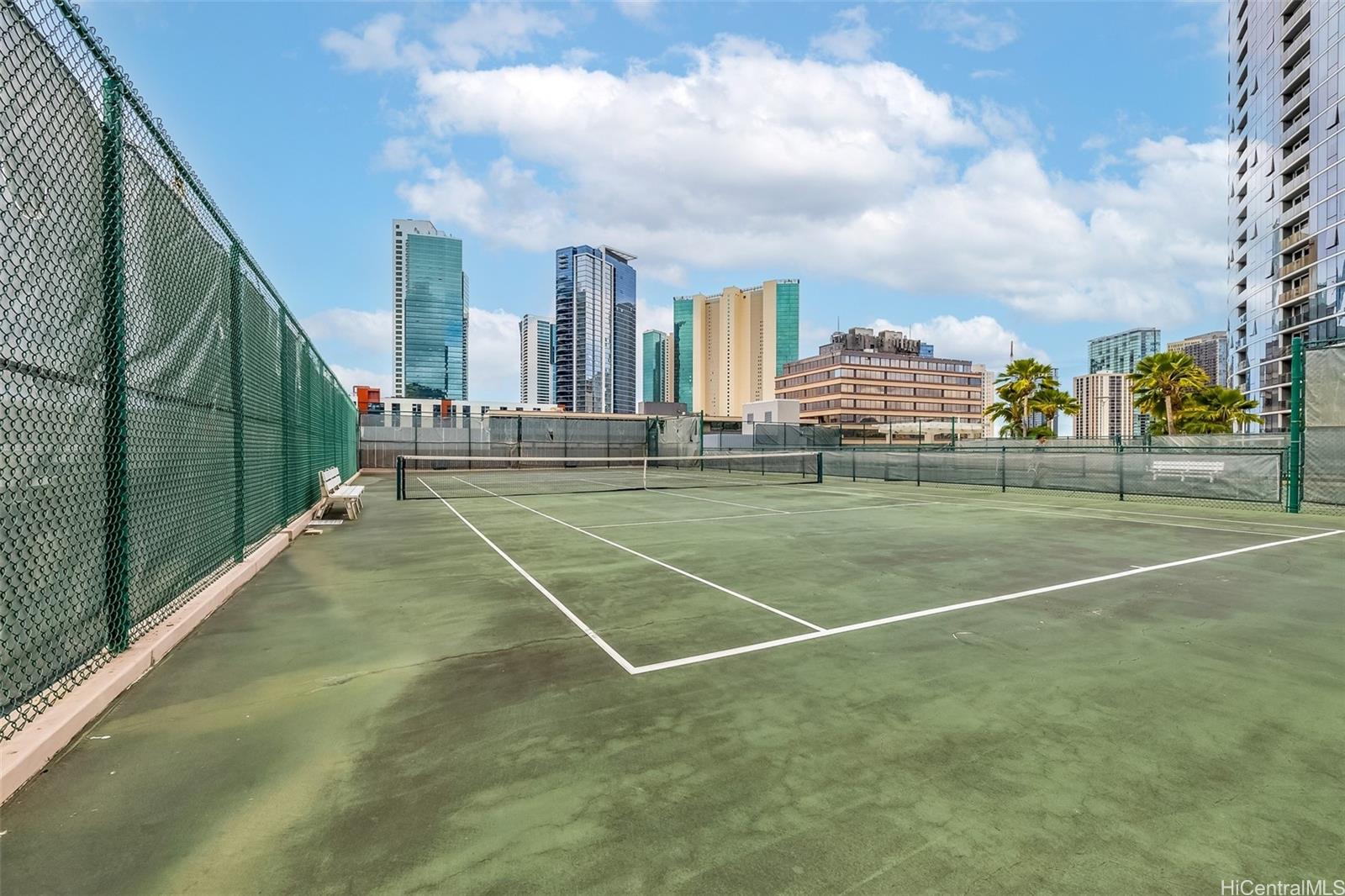 Experience prime location luxury living in this spacious 1-bedroom, 1-bathroom condominium located on the 37th floor of the Moana Pacific. This unit offers breathtaking panoramic views of the city skyline and mountains. The unit features an open kitchen floor plan, with a Sub-Zero refrigerator that integrates with the cabinetry. Additional conveniences include an in-unit washer and dryer, a walk-in closet, floor to ceiling windows and a TV with a wall mount, which the seller is leaving for the new owner. Enjoy resort like amenities, including a swimming pool, jacuzzi, fitness center, tennis courts, BBQ area, movie theaters, and more. Perfect for hosting friends and family and plenty of guest parking. Located in the Kakaako neighborhood, this condominium is close to Ala Moana Beach Park, the Ala Moana Shopping Center, and a variety of dining and entertainment options. Maintenace fee: $894.21 Cable/Internet Fee: $56