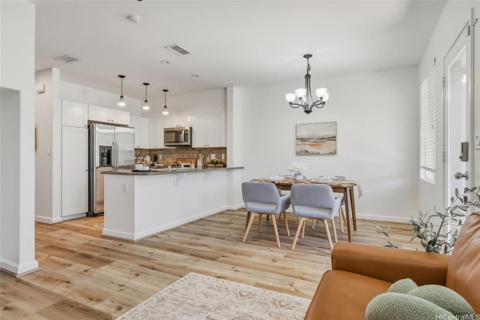 ホアカレイのKa Makanaへようこそ。この美しく改装された3ベッドルーム、3バスルームのタウンホームでは、快適さ、利便性、そしてアイランドライフが融合しています。ゲスト用、二世帯住宅、ホームオフィスなどに最適な、人気の高い1階のベッドルームとフルバスルームを備えたこの住居は、床材と塗装がすべて新しくなり、明るくすぐにでも入居できる雰囲気です。広々とした間取りは、リラックスしたり、ゲストをもてなしたりするのに最適な、シームレスなリビングとダイニングエリアを提供します。Ka Makanaのプール、クラブハウス、近隣公園からすぐの場所に位置し、ペットフレンドリーで徒歩圏内のこのエリアでは、コミュニティのアメニティに簡単にアクセスできます。週末は、近くのワイカイラグーンを探索して過ごしましょう。レストラン、ウォーターアクティビティ、エキサイティングな波のプールなど、活気に満ちたスポットがすぐ近くにあります。モダンな改装とアイランドライフの利便性を融合させたこの魅力的な家で、ホアカレイの最高のライフスタイルを体験してください。