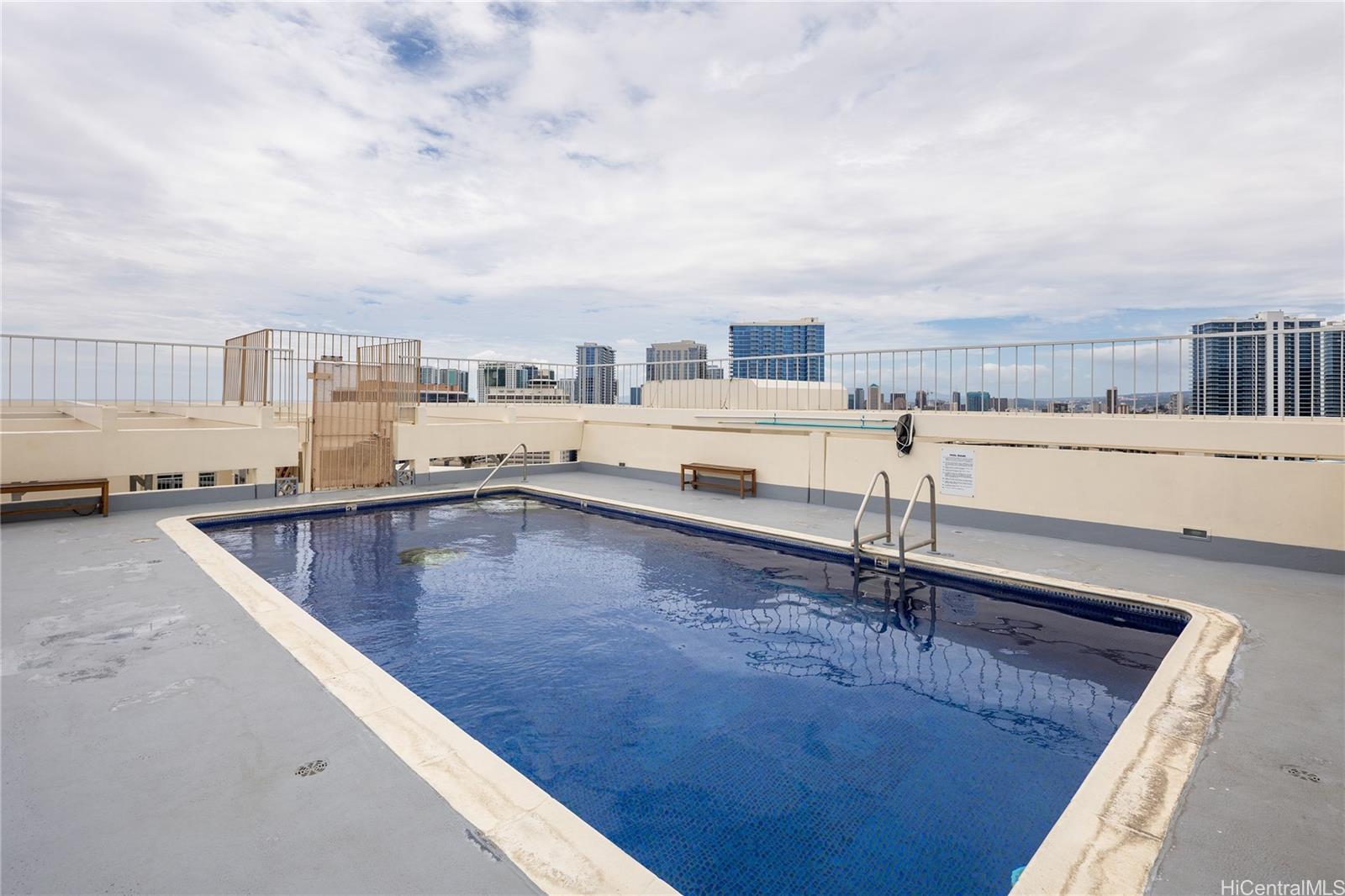 Preferred “10” stack at Kapiolani Manor with sweeping Diamond Head, ocean, mountain, and city views. This 1-bedroom is bright, clean, and move-in ready with fresh white paint, newer flooring, a brand-new refrigerator, and your own private lanai to take it all in—including live fireworks every Friday night. Enjoy all the upgrades, a sparkling pool, and rare secured, covered, and assigned parking with additional storage. The building offers cabanas, a resident manager, and secured entry, with a maintenance fee that conveniently covers electricity, internet, sewer, and water—making ownership simple and stress-free. Ideally positioned on the preferred Diamond Head side, you’re minutes from Don Quijote, Ala Moana Shopping Center, beaches, dining, and freeway access. Easy to live in, easy to rent, and easy to love. Special Incentive: Seller to credit Buyer at closing an amount equal to the first year of HOA dues (based on current HOA rate).