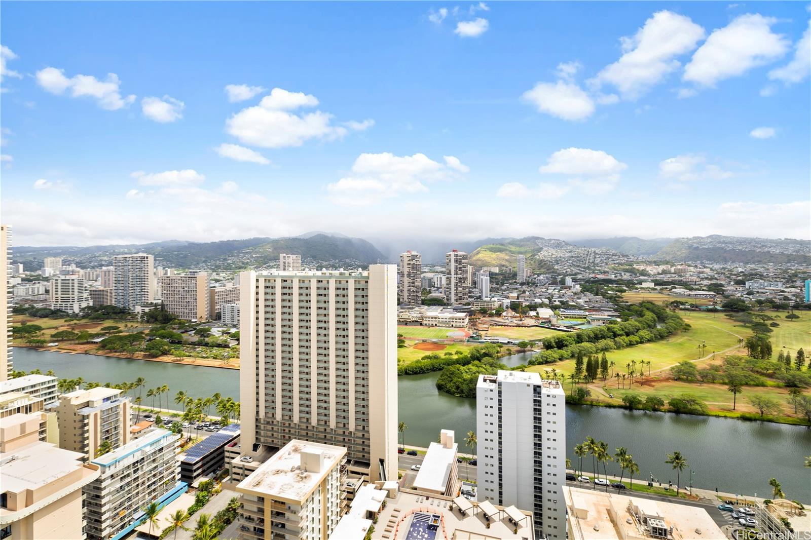 Positioned on the preferred cooler mountain side, this high-floor 2-bedroom residence at Royal Kuhio #3201 offers refreshing trade winds and an open, comfortable living space filled with natural light. Enjoy expansive views of the Ala Wai Golf Course, canal, and surrounding mountains from your private lanai. The spacious living area provides flexibility for both everyday living and entertaining, while the mountain-facing orientation offers a more peaceful outlook in the heart of vibrant Waikiki. Located just moments from Waikiki Beach, world-class shopping, dining, and entertainment, Royal Kuhio is a secure, well-managed building featuring a swimming pool, sun deck, fitness center, recreation area, and 24-hour security. Unit will be available to show from 3/17/26.