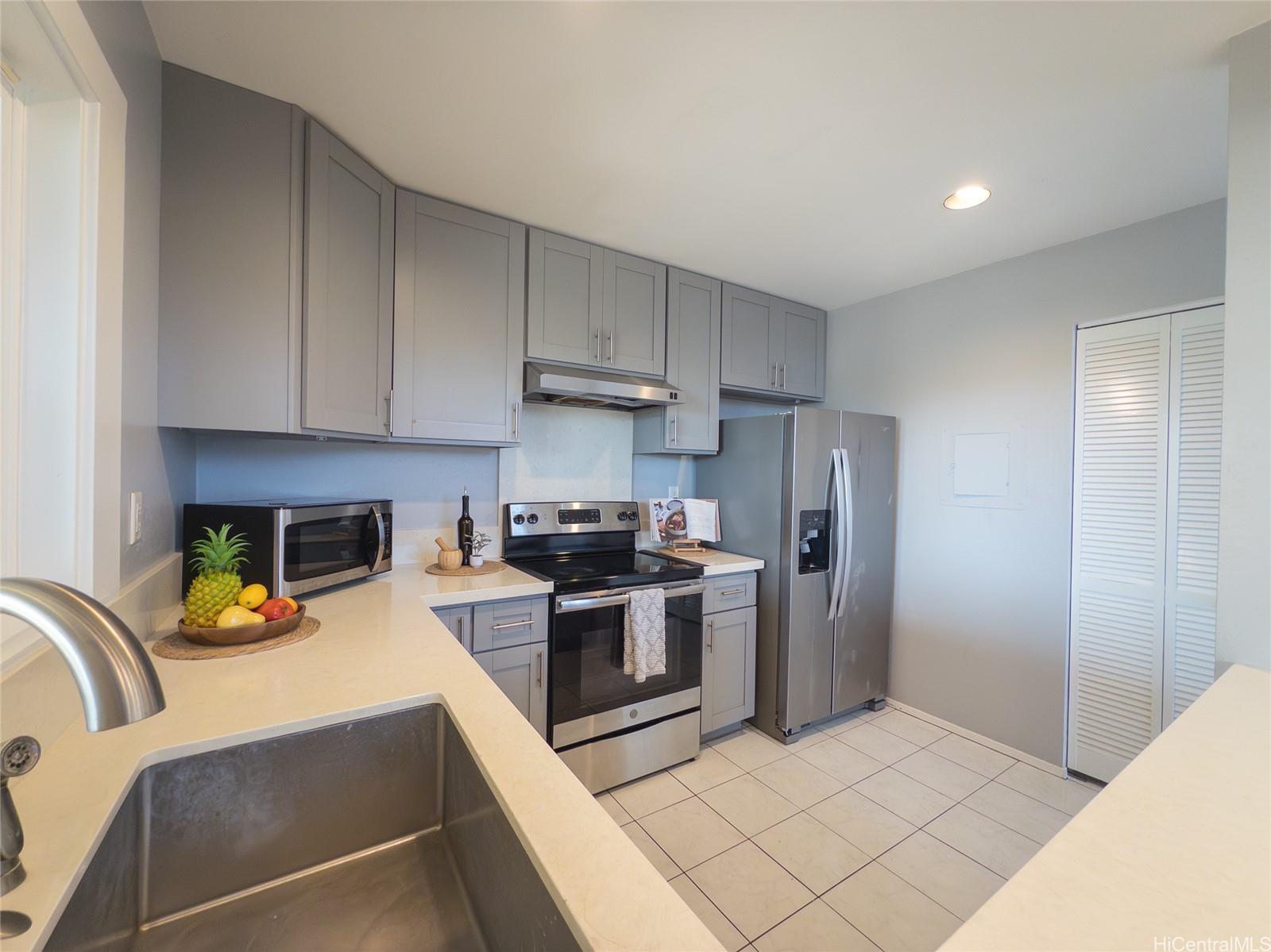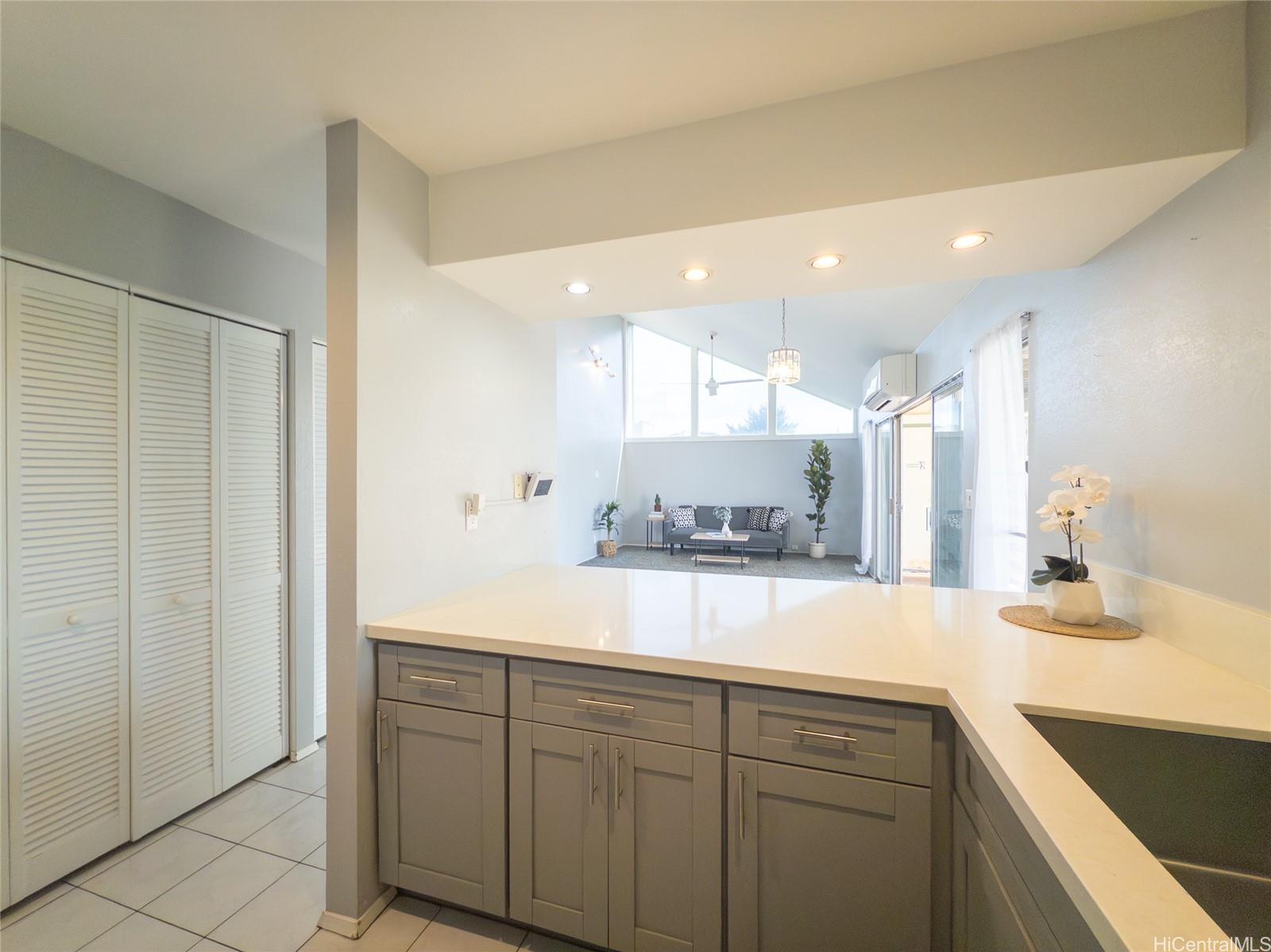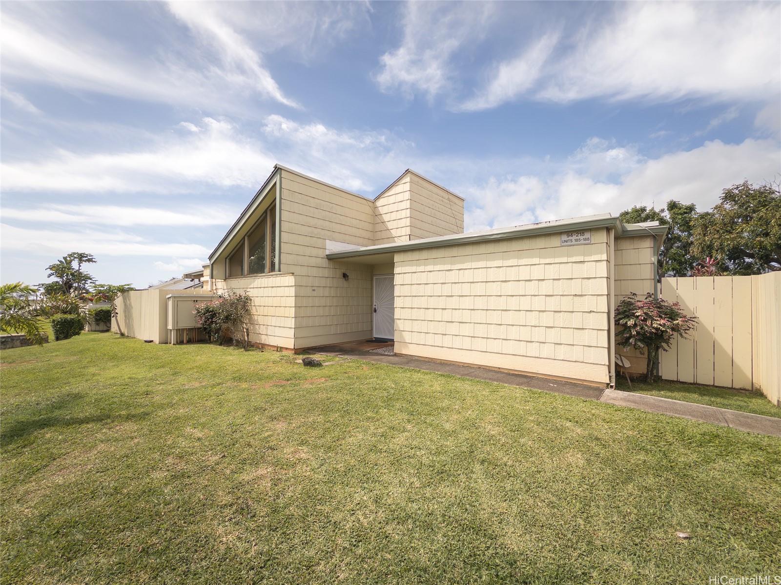 Spacious single-level end unit with no neighbors above in desirable Kealohi Hale in Mililani. this bright and comfortable home features an upgraded kitchen with convenient eat-at counter seating that opens to the living area, creating a welcoming space for everyday living and entertaining. The living area flows seamlessly to a large covered lanai and enclosed courtyard, providing additional outdoor living space that is perfect for relaxing, dining, or hosting gatherings with family and friends. The unit is equipped with a solar water heater and split air conditioning for added efficiency and comfort. The end-unit location allows for added privacy. Located in a pet-friendly community near schools, neighborhood parks, and recreation center, this home offers both comfort and convenience. Mililani Town is a highly sought-after master-planned community known for its wonderful lifestyle amenities, including seven classes and activities for residents of all ages.