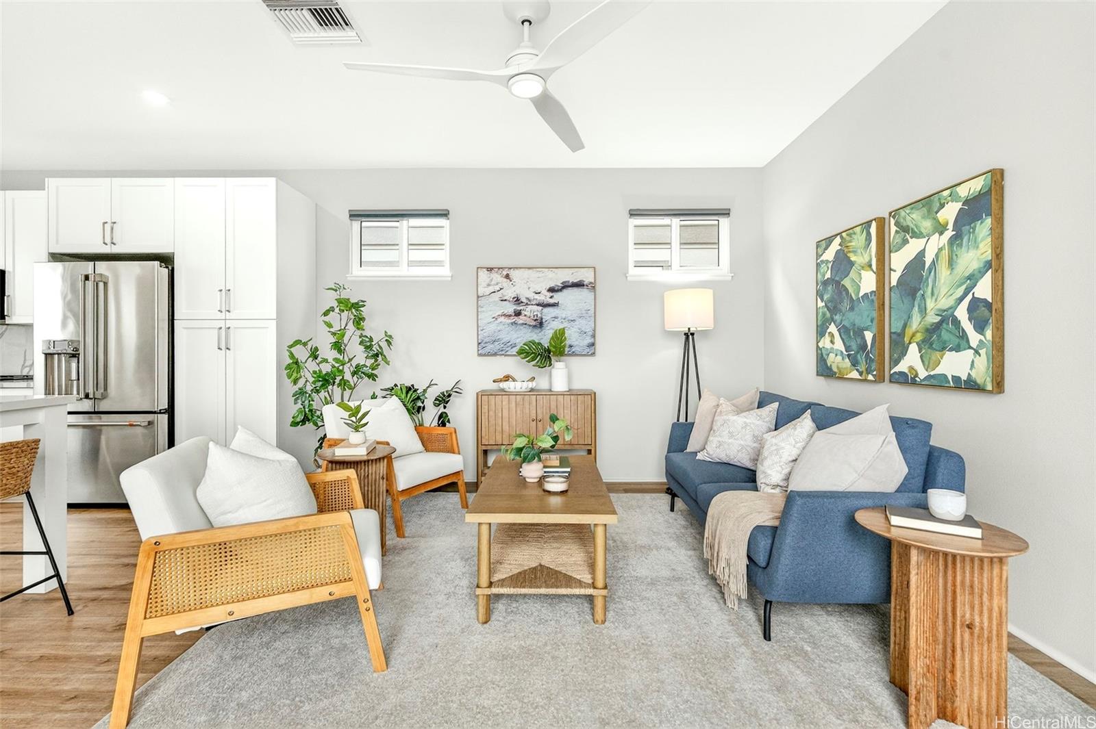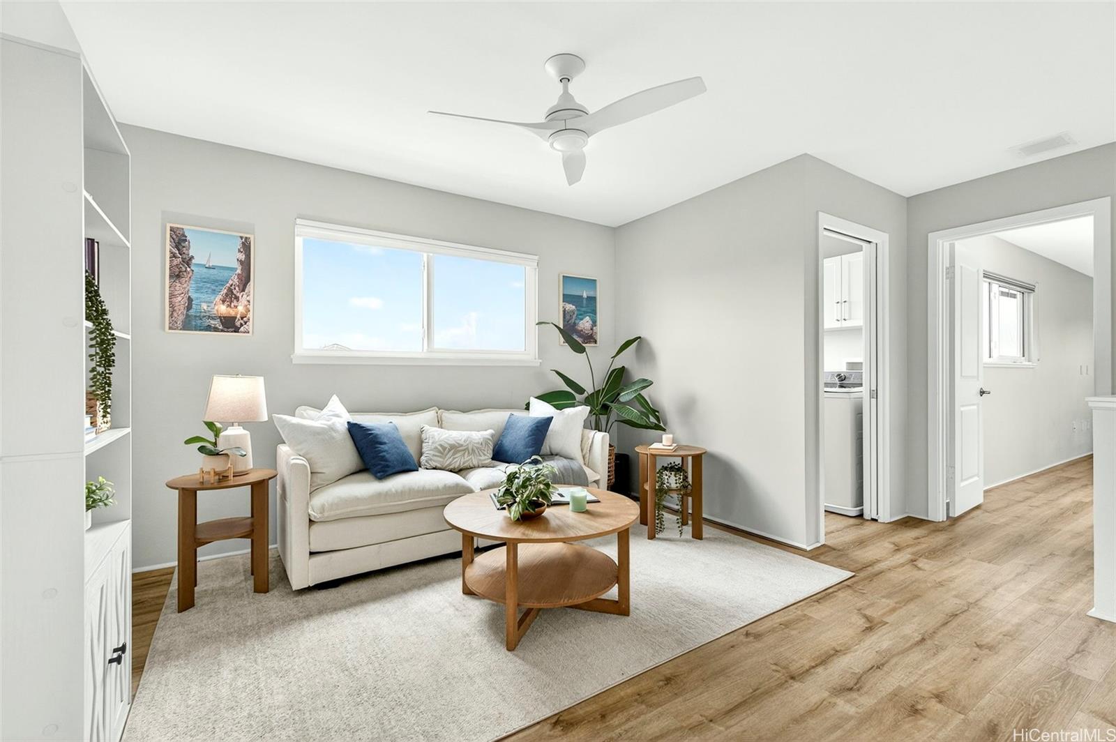 人気のカウル地区へようこそ!築浅のこの3ベッドルーム、2.5バスルームの一戸建て住宅は、モダンなスタイル、プライバシー、エネルギー効率を融合させた、考え抜かれたデザインの居住空間1,673平方フィートを提供します。オープンコンセプトの間取りは、9フィートの天井、全室に敷かれた高級ビニールプランクフローリング、カスタムタイルワーク、そして多目的に使えるボーナスロフトが特徴です。キッチンは、白いシェーカーキャビネット、クォーツカウンター、アップグレードされたGEカフェ家電を備えたデザイナーの夢のような空間で、日常生活やゲストをもてなすのに最適です。PVソーラーとテスラパワーウォールバッテリーバックアップにより、電気代を削減しながらセントラルエアコンを稼働させ、安心してお過ごしいただけます。緑地帯に面した角地に位置し、隣接する住宅はわずか5軒のみ。片側に隣家がないため、プライバシーも確保されています。美しく造園された庭は、最新のスプリンクラーシステム、飛び石、緑豊かな熱帯植物、そして2つのコンクリート製ラナイを備え、プロのデザイナーによって設計されています。パーティーにも最適です!プライベートなフェンスで囲まれた裏庭にあるデラックスジャグジーで、ゆったりとおくつろぎください。H-1からわずか数分の便利な場所に位置し、成長著しい「第二の都市」カポレイのビーチ、ショッピング、レストランへも簡単にアクセスできます。