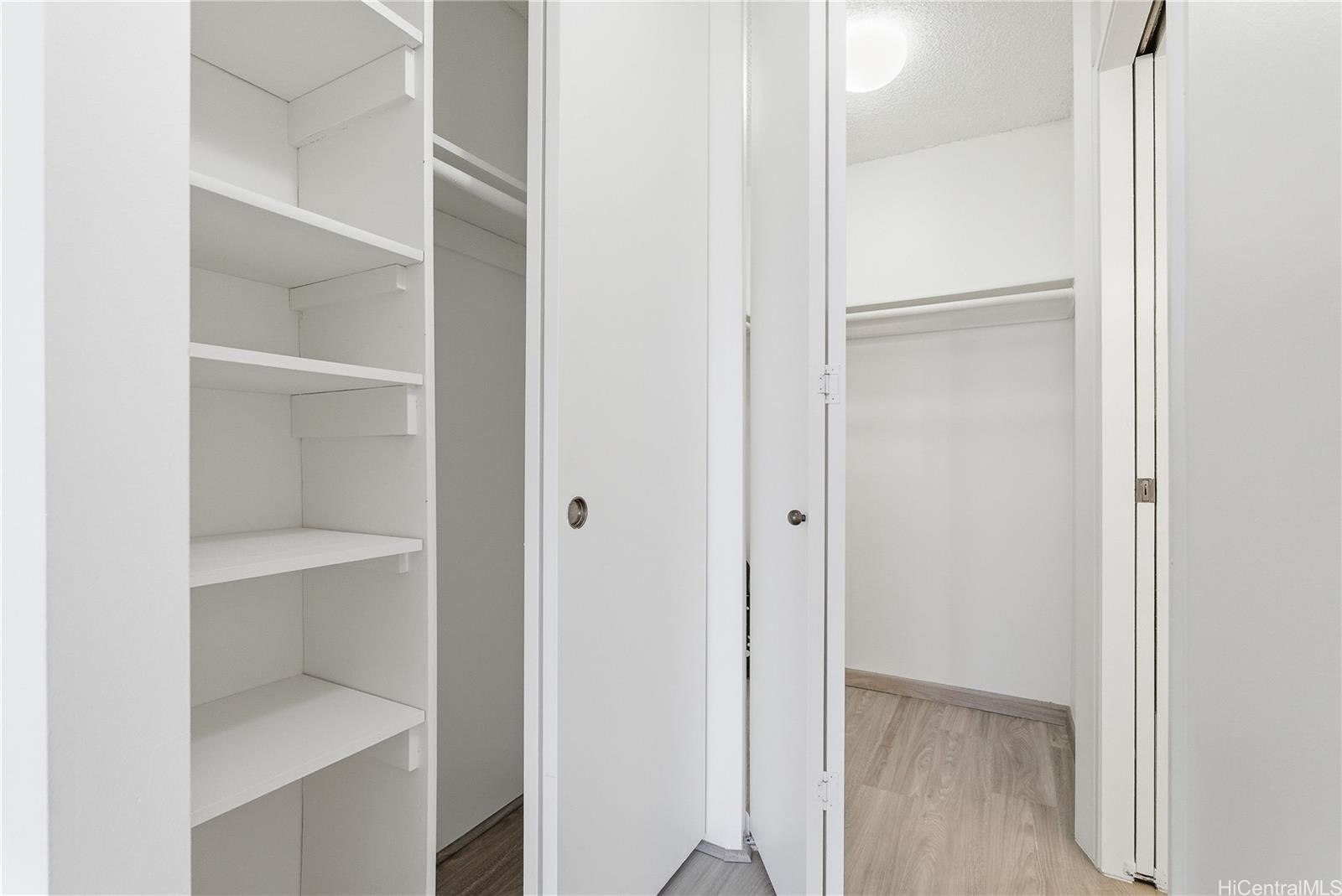 Hidden gem in Kaimuki. Ready to move-in or rent out. Enjoy the cool Tradewind breezes, the beautiful treetop garden & mountain views, and the Eastern Morning sunrises, with no hot afternoon sun! This makes it a must see! This high-floor unit boasts lots of natural light, picturesque windows and sliding glass doors, featuring 2 good sized lanais. The main bedroom & on-suite bathroom has 2 closets. The 2nd bedroom offers a flexible layout with built-in shelves & 2 doors that open into the living room, a perfect office or crafting space. 2 full baths w/tubs, full size washer & dryer. 2 parking stalls-1 covered, 1-open. Recently renovated w/new vinyl floors. Pet friendly too! Maintenance fee covers water & sewer, internet, cable TV, building Hurricane Insurance, 24-hour security, resident manager & property maintenance. Conveniently located next to Chaminade University & St. Louis High School and is walking distance to UH Manoa! Easy access to freeways going both east & west, near Waikiki & downtown. Set back from the road, with a private park with mature trees, pool, basketball and tennis court, gym & recreation room! Amenities Galore. So much fun! Plenty of guest parking. Sold As-Is.