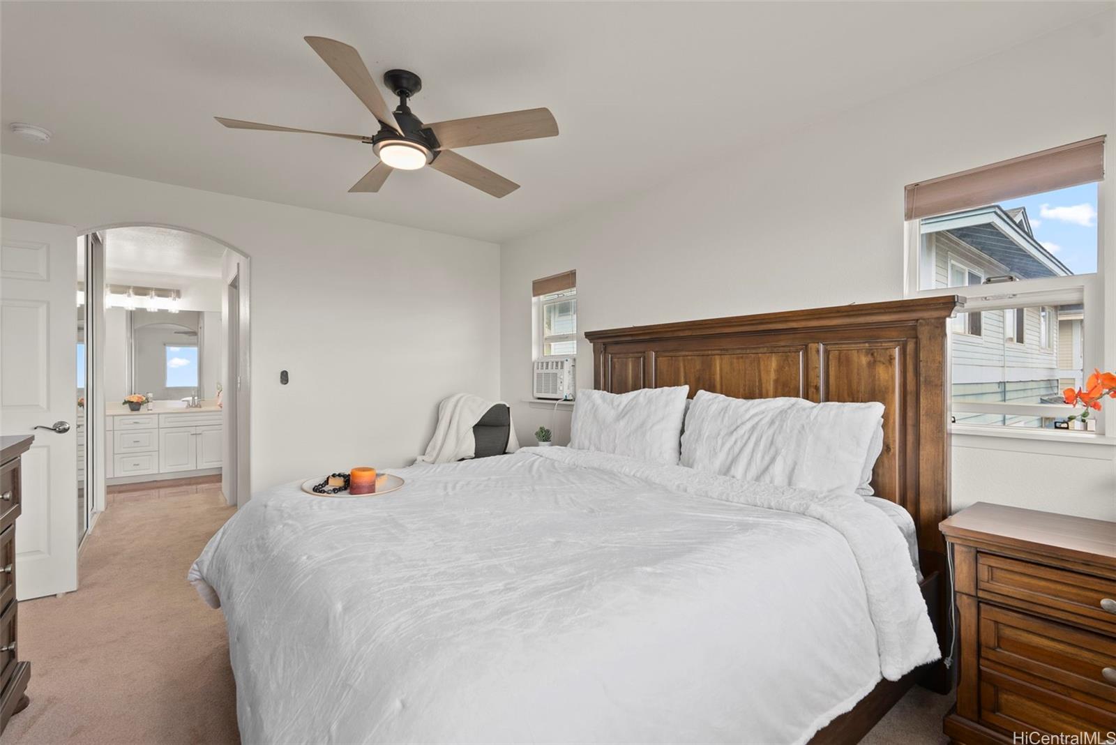SELLER OFFERING $10K CLOSING COST CREDIT! Welcome to this move-in ready single-family detached home in Upper Makakilo, where this meticulously maintained 3-bed, 2.5-bath residence reflects true pride of ownership. Situated at the highest point of this gated community, this home captures cool breezes & panoramic views of Diamond Head & the sparkling ocean. Upgrades:solar water heater, newer appliances, quartz counters, refaced cabinets, fresh carpet, split AC, fans, fixtures, faucets, blinds, landscaping & paint. Relax on the spacious deck-PERFECT for BBQ’ing! Low Maintenance fee & ample guest parking! 1 photo has been virtually staged(enhanced).