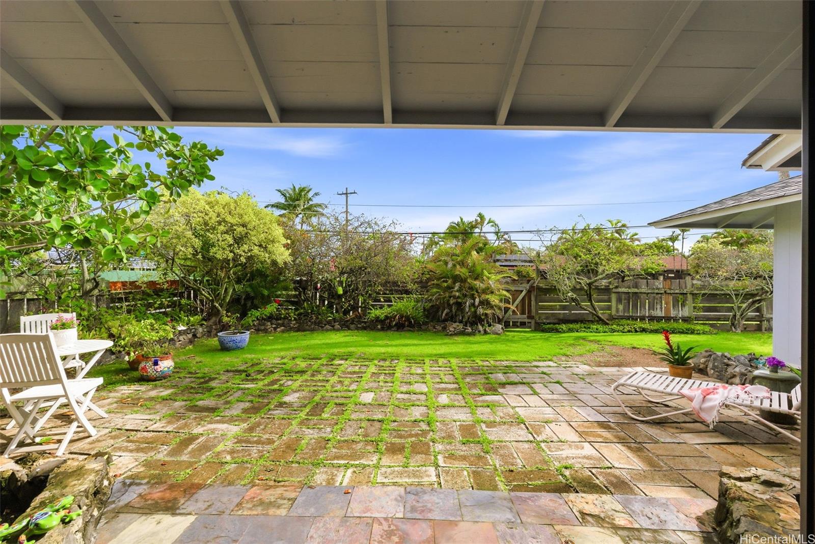 Located just moments from the white sands of Kailua Beach, this charming corner-lot home is the perfect foundation for your family’s forever retreat. Freshly painted tongue and groove walls with brand-new bedroom carpeting, this single-level residence allows you to settle in comfortably while you begin customizing and modernizing each space to your unique taste. Or embrace it and live in it as is. but whichever you decide don't miss this incredible opportunity. The home balances its original "old-world" character with oversized original windows in the bedrooms, an expansive living area with bamboo flooring and a wall of sliding doors leading out to the front courtyard. Outside, the generous corner lot offers incredible flexibility—whether you dream of building an ADU for guest, rental, or extended family or creating a lush oasis with a pool for entertaining and relaxing. Situated in an active community where walking and biking are the norm, you’ll enjoy a front-row seat to the local 4th of July parade and seamless commutes via the H-3. Being close to schools and the Kaneohe Marine Base are also convenient.