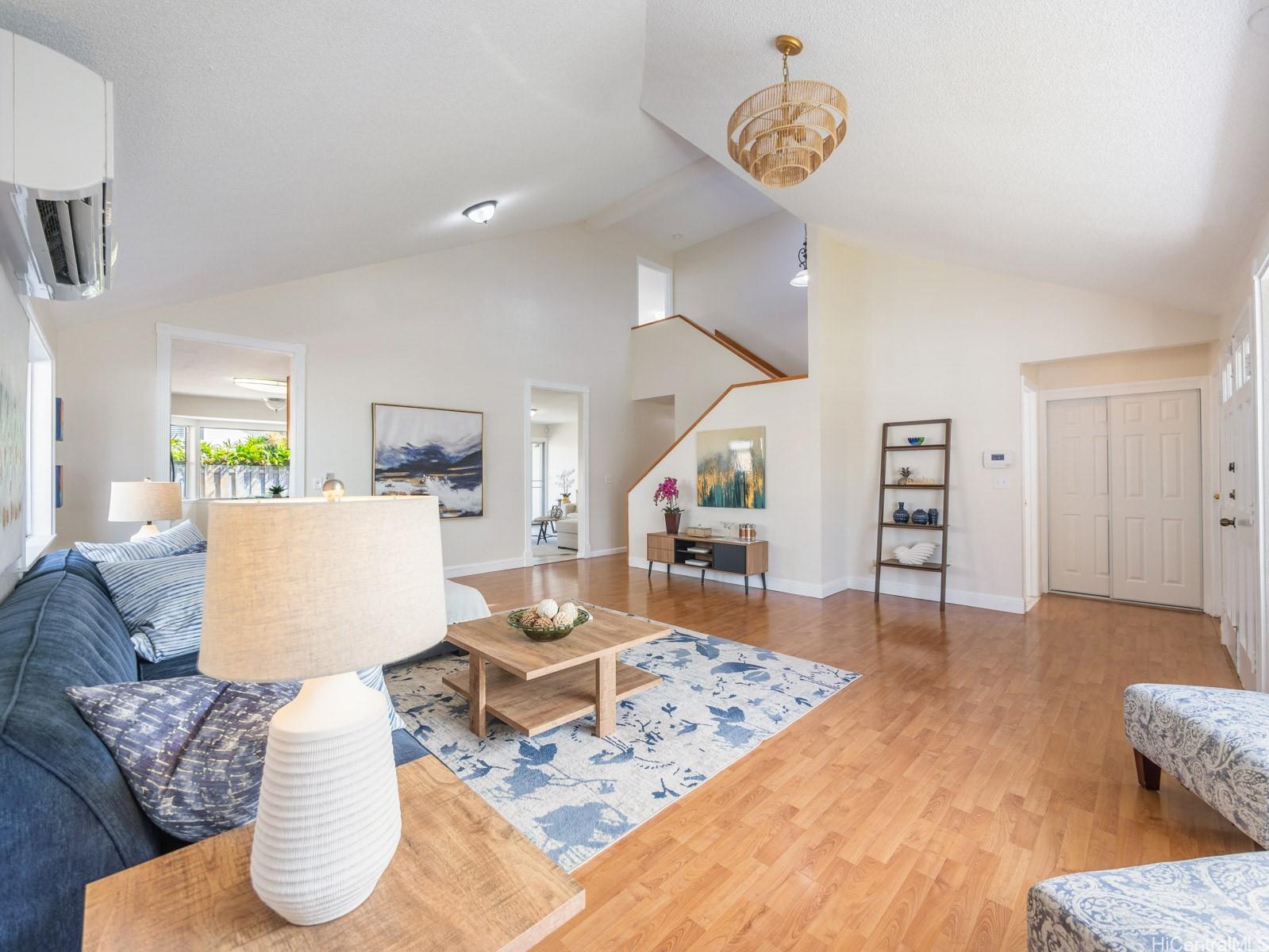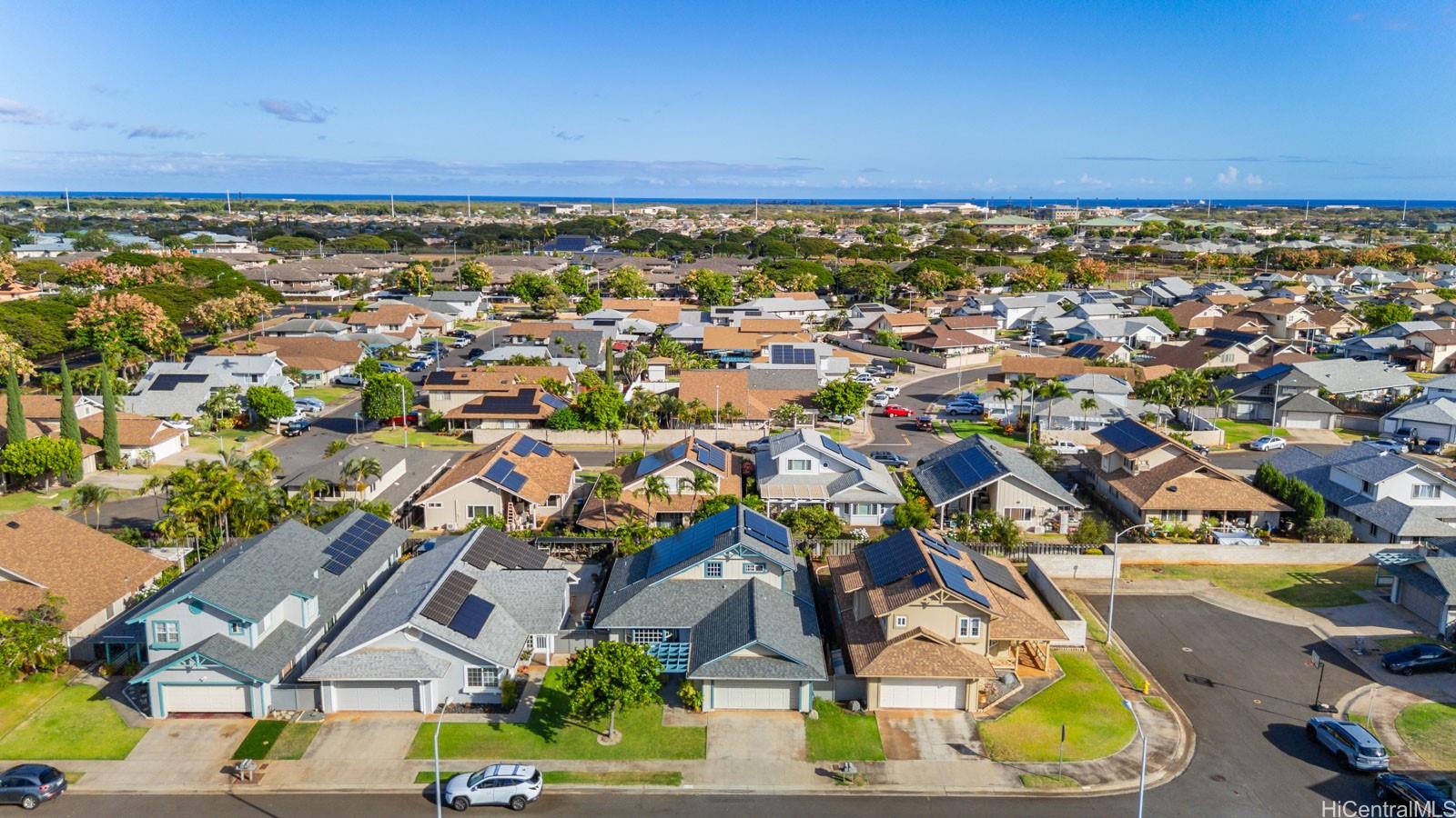 This Stunning 4-Bedroom Home in Kapolei – Newly Renovated and Move-In Ready 4-bedroom, 2.5-bath home in Kapolei offers 1,930 sq ft of modern living space on a 5,000 sq ft lot. Equipped with split AC in the living and dining areas and window AC's in every bedroom, you’ll stay cool year-round. Along with 36 solar panels and access to the community pool, which will definitely help with that cost and Hot Hawaiian Summer Heat. Recently renovated with fresh interior paint, smooth new ceilings throughout, and new flooring in the main bedroom closet with built-in storage, this home blends comfort with contemporary style. High ceilings create an open, airy feel, while the spacious backyard is perfect for outdoor entertaining or relaxing. With a 2-car garage plus extra driveway parking, there’s plenty of space for your vehicles and guests. Located near the freeway, shopping, dining, and the Kapolei Golf Course, you’ll have convenience at your doorstep. Don’t miss out on this move-in-ready gem in a prime Kapolei location! Make an offer today!