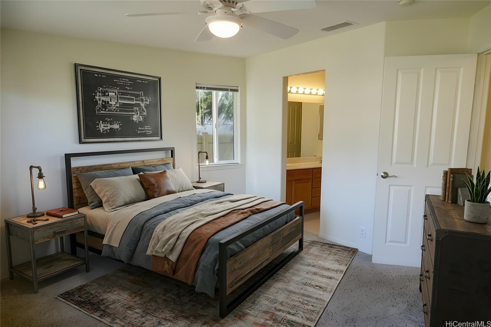 Welcome home to this thoughtfully designed 2-bedroom, 2.5-bath residence in the desirable, pet friendly and gated community of Huelani! A rare downstairs bedroom with a full bathroom provides the perfect setup for guests, multigenerational living, or a private home office. Indoor laundry area is also downstairs.