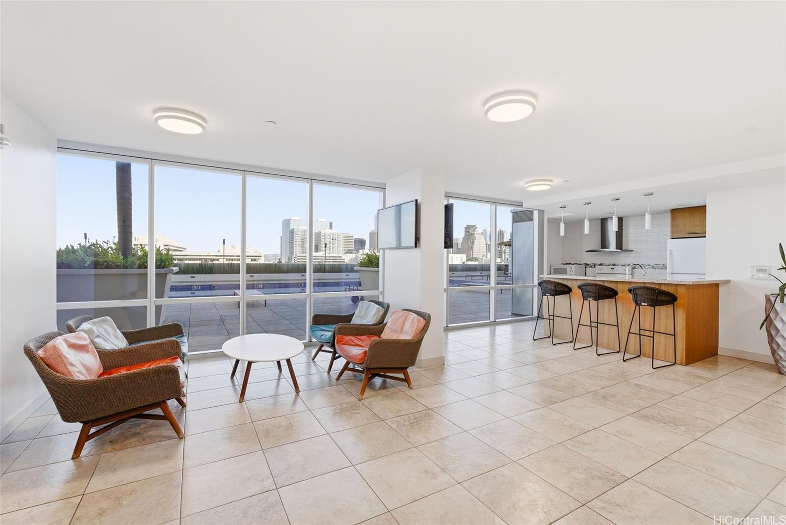 カカアコの中心部に位置するKeauhou Placeの、めったに売りに出ない角部屋3ベッドルーム。床から天井までの窓からは、3方向からの眺望と、ほぼ270度の街と海のパノラマビューをお楽しみいただけます。室内面積は1,346平方フィートと広々としており、バルコニーも付いています。オープンコンセプトのリビング、キッチンアイランド、スプリットエアコン、専用バスルーム付きの主寝室など、モダンなライフスタイルに合わせて設計されています。アメニティには、温水プール、ジャグジー、バーベキューエリア、エクササイズルーム、プレイグラウンド、ミーティングルームなどがあります。ペット可で、年間を通して無料の子供向けアクティビティが多数用意されています。キーフォブによる入退室管理と、常駐の管理スタッフと警備員によるセキュリティで安心です。階下にはDown to Earth、H-Mart、レストラン、その他のショップがあります。Salt Kakaakoや30以上のショップやレストランまで徒歩圏内。通りの向かいには、将来開業予定のCivil Center Rail Stopがあり、カカアコのあらゆる魅力を満喫できます。