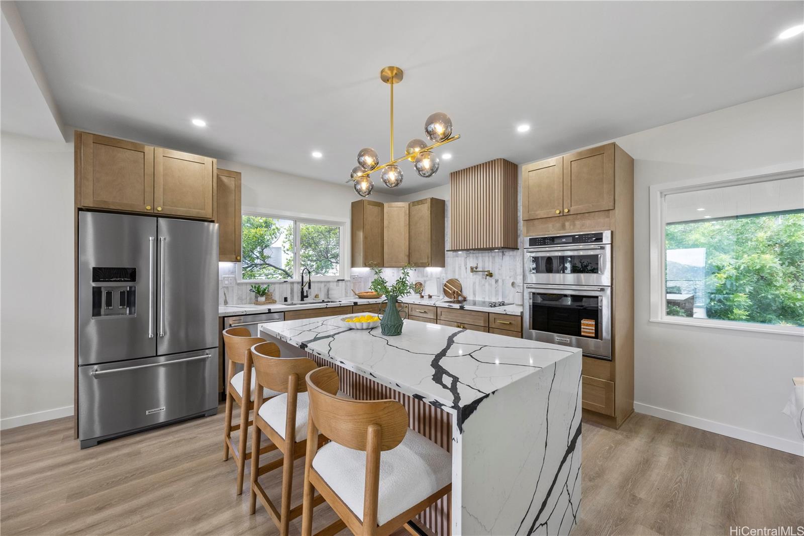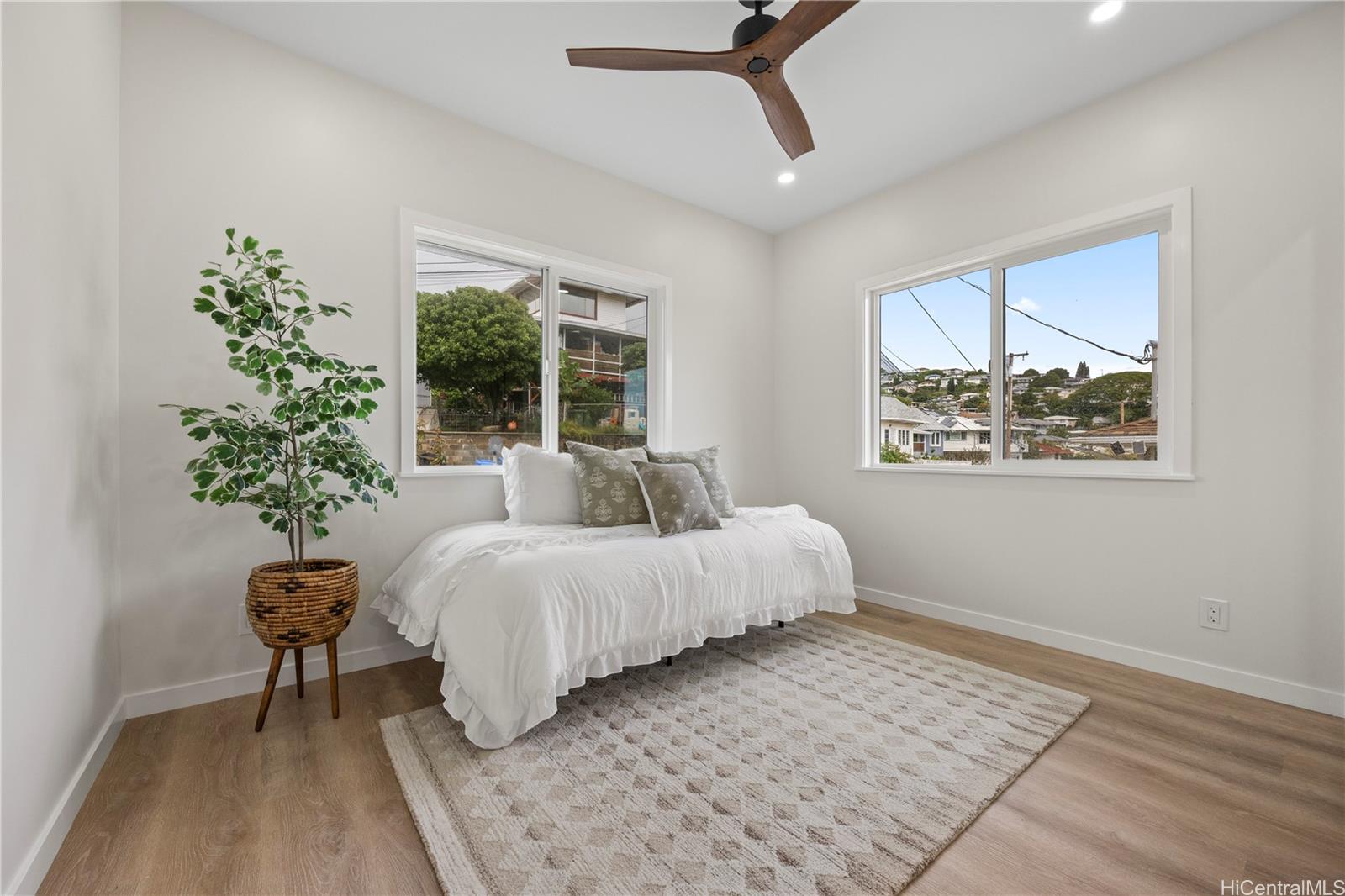 Indoor & Outdoor Living at Its Finest – Prime St. Louis Heights Hale! Experience luxury and comfort in this fully remodeled custom home, perfectly situated to capture breathtaking views of Diamond Head, Waikiki, and the coastline. Enjoy newly added balcony and oversized deck for the ultimate indoor/ outdoor living experience. Complete renovations include all new plumbing, electrical, roof, interior & exterior walls, flooring, and high end appliances. Large downstair one bedroom unit idea for multifamily living or rental income. This is a rare opportunity to own in St. Louis Heights, combining luxury, convenience, and lifestyle in one exceptional home.