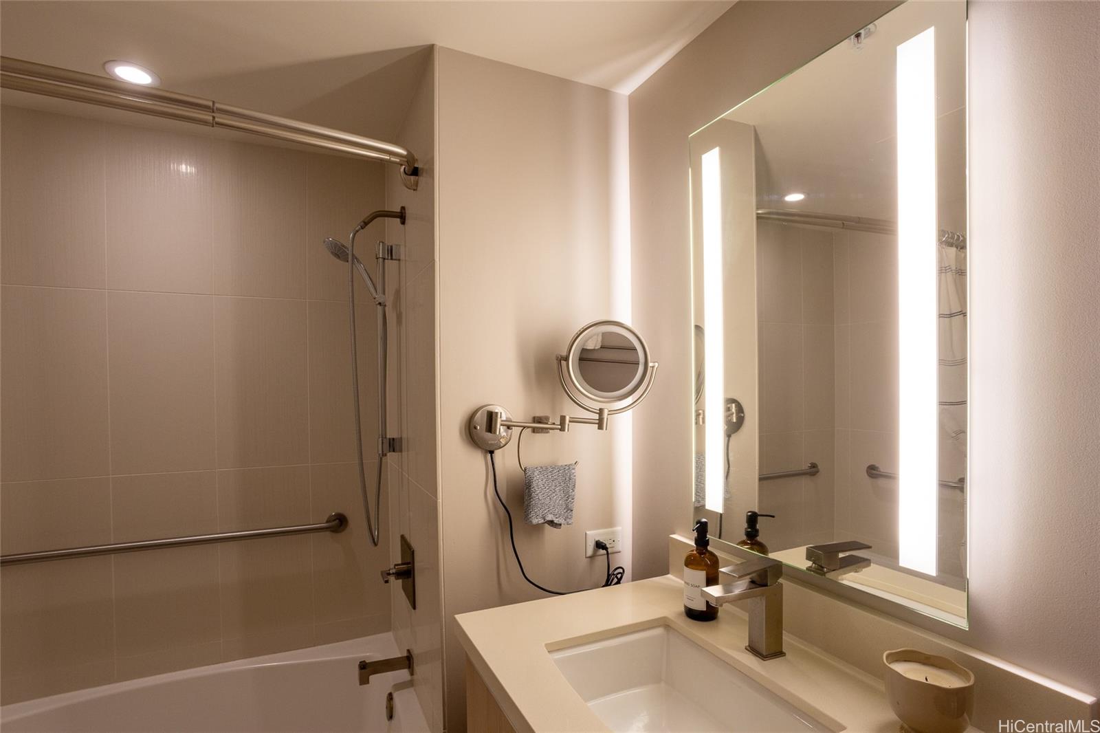 シンフォニー・ホノルルで、贅沢なアイランドライフをご体験ください。ホノルル・ワード/カカアコ地区の中心部に位置するこのエレガントな1ベッドルーム、1バスルームのレジデンスは、床から天井までの窓から美しい山々と街の景色を一望できます。木製の床とスタイリッシュなペンダントライトが配されたリビングエリアには自然光がたっぷりと差し込み、モダンな空間を演出します。グルメキッチンは機能性とスタイルを両立させ、上質なヨーロッパ製キャビネット、クォーツカウンタートップ、ボッシュ製家電、そしてフルサイズの洗濯機と乾燥機を備えています。居住者は、インフィニティプール、ホットタブ、バーベキューカバナ、フィットネスセンター、ヨガスタジオ、映画館、ドッグパーク、ゲストスイートなど、リゾートスタイルのアメニティをお楽しみいただけます。ニール・ブレイスデル・センターの向かいに位置し、アーティゼン、MWレストラン、そしてアラモアナセンターの世界クラスのショッピングやレストランへも数分で行ける絶好のロケーションです。このユニットには、約190平方フィートの珍しい大型収納ロッカーも備わっており、レクリエーション用品、荷物、季節用品などを収納するのに十分なスペースを提供します。これは、マンション暮らしにおいて珍しく、非常に魅力的な設備です。