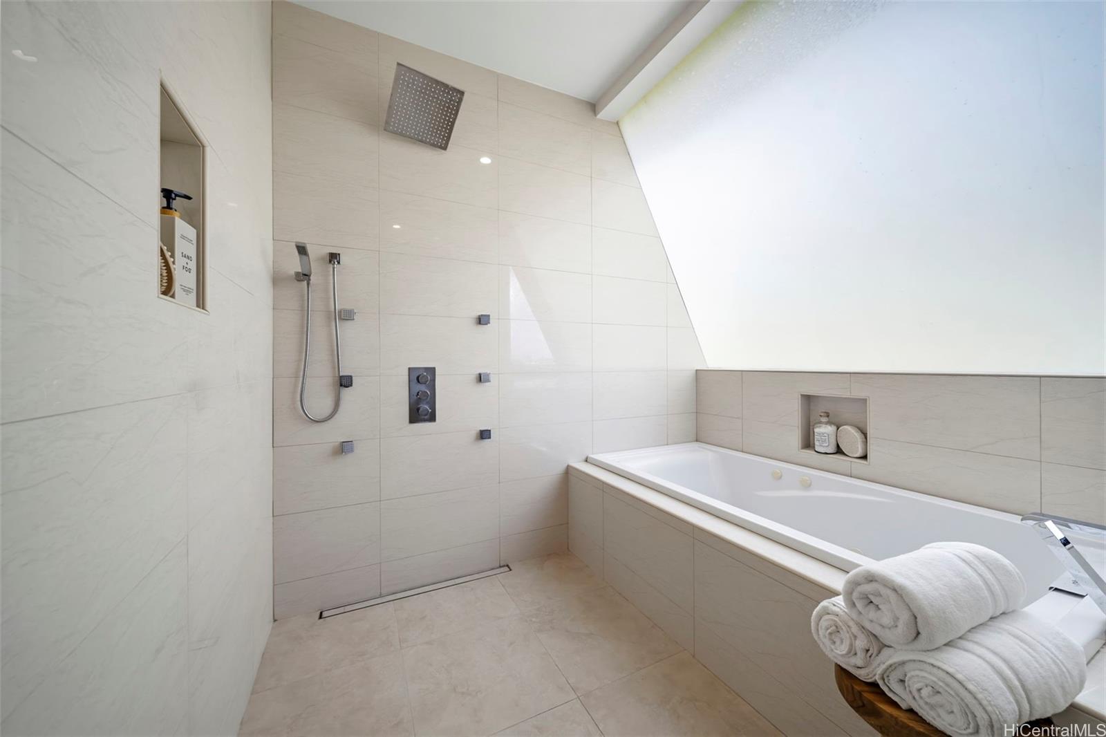 Striking modern architectural residence in the Diamond Head View neighborhood offering panoramic ocean, coastline, Diamond Head, mountain, and sunrise views. Designed with expansive glass, soaring ceilings, and open interiors, this three-level home features 7 bedrooms, 6 full baths, and 2 half baths, with seamless indoor-outdoor living throughout. Built with high-quality materials including designer cabinetry, updated kitchen, and refined bathrooms. The home includes a separate guest suite with private entrance. Resort-style amenities include a large tiled pool with spa, outdoor shower, covered lanais, and a spacious rooftop deck. Owned 27-panel photovoltaic system installed in 2020. Set level access — no steep hills — and a short walk to beaches, coastal trails, and parks. Close proximity to Monsarrat Avenue dining, boutique shops, cultural spots, and Waikiki, with downtown Honolulu and Kahala just minutes away — all while maintaining a quiet, private residential feel.