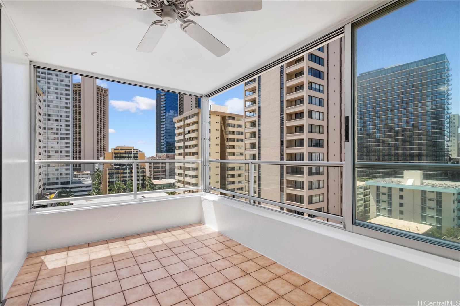 Light, breeze, and captivating city views welcome you to this desirable corner unit at Waikiki Townhouse. This 1-bed, 1-bath residence offers a 547 sqft interior combined with a 135 sqft enclosed lanai for 682 sqft of total living space. Features: in-unit washer/dryer, window AC units, freshly repainted interiors, and a reglazed bathtub for a move-in ready feel. Assigned parking is available via building waitlist. Waikiki Townhouse is a pet-friendly and VA-approved building with great amenities and conveniences: resident manager, secured entry, sun deck, bicycle & surfboard storage. Waikiki living! Mere minutes from Kuhio and Kalakaua Avenues, world-class shopping, dining, and entertainment, and only a quarter-mile from the beach. This is a fantastic opportunity for a primary residence, second home, or investment property. Special assessment for windows was paid off and no sandwich lease! Photos have been enhanced/ virtually staged.