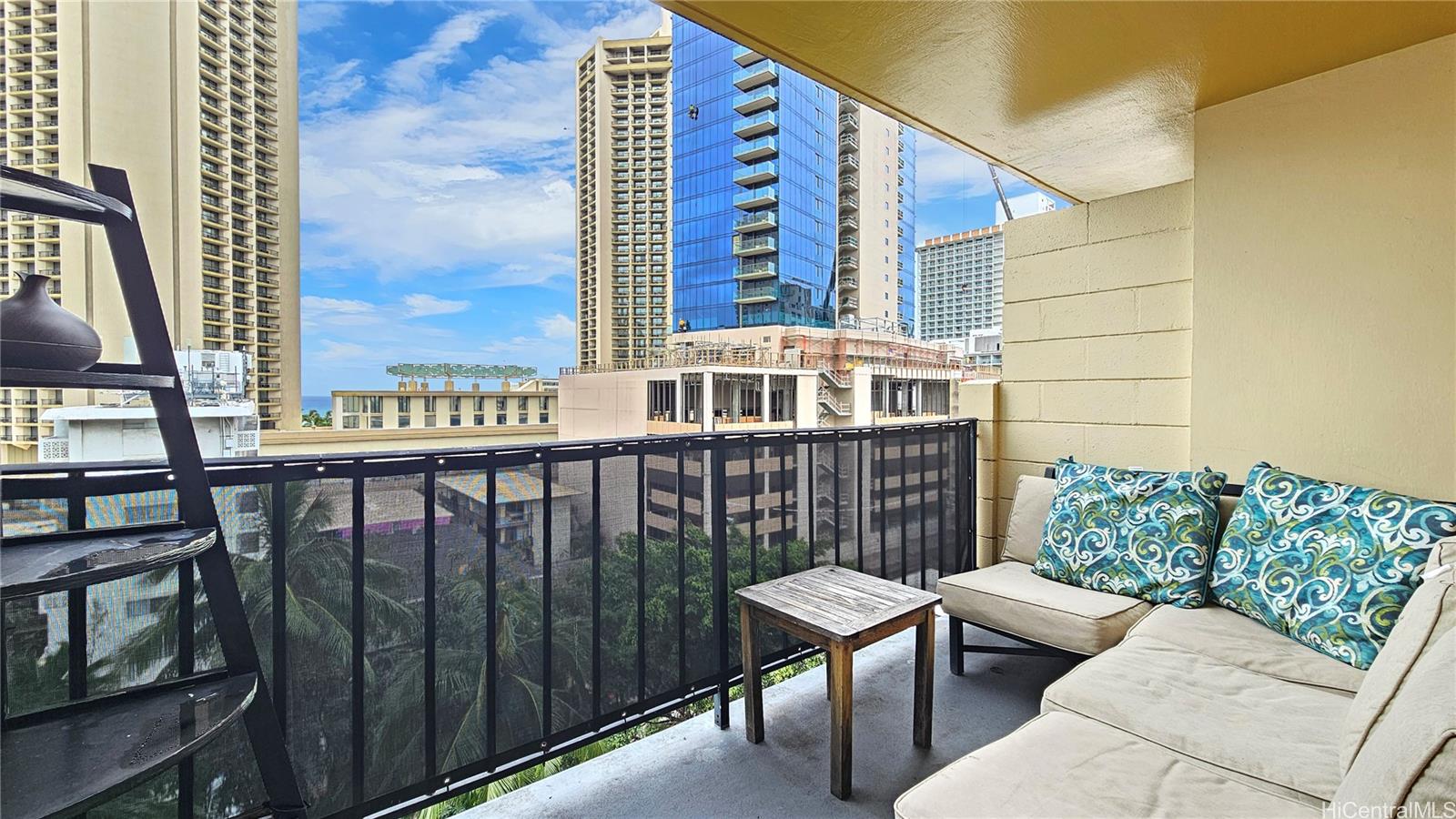 Legal vacation rental at the Bamboo Hotel, 2425 Kuhio Ave #1001, located in the heart of Waikiki just a short walk from Waikiki Beach, dining, and the International Market Place. This updated 10th-floor queen studio overlooks the tropical pool and features three large private lanais, offering mountain, city light, and partial ocean views—rare outdoor space for a Waikiki studio and perfect for enjoying morning coffee, fresh island breezes, or evening city lights.
