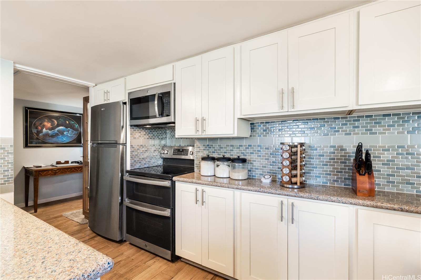 Welcome to your beautifully upgraded oasis at Parkview, located on a quiet cul-de-sac on the highly desirable East edge of Waikiki! This spacious 2-bedroom, 2-bathroom unit was remodeled in 2022 and boasts a stunning array of recent designer updates. Entertaining is a dream in the upgraded kitchen, featuring a gorgeous new marble tile wall around the island, chic new lighting, a stunning chandelier, and a brand-new stove top double oven installed in 2024. Relax in the refreshed bathrooms showcasing elegant marble tile accents, as well as brand-new shower floors and glass doors completed in December 2025.