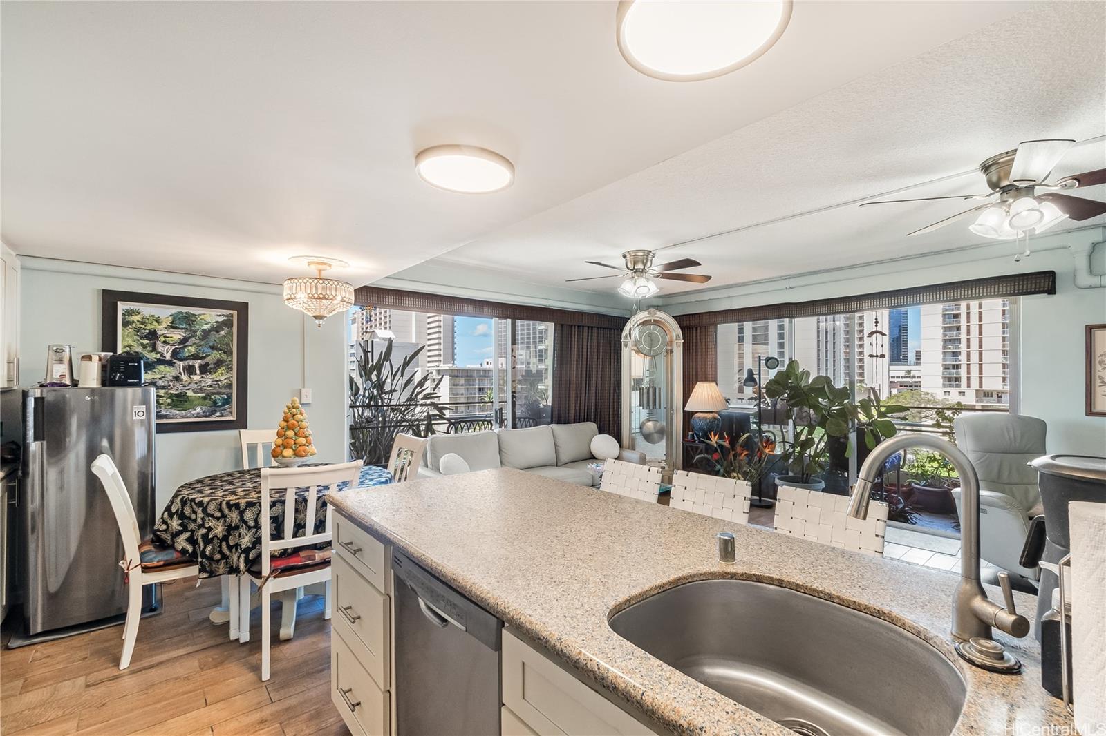 ワイキキの人気の東端にある静かな袋小路に位置する、美しく改装されたオアシス、パークビューへようこそ!この広々とした2ベッドルーム、2バスルームのユニットは2022年に改装され、最新のデザイナーによる素晴らしいアップデートが数多く施されています。改装されたキッチンでは、アイランドを囲む美しい新しい大理石のタイル壁、シックな新しい照明、見事なシャンデリア、そして2024年に設置された真新しいコンロ付きダブルオーブンを備え、ゲストをもてなすのも夢のようです。エレガントな大理石のタイルがアクセントになったリフレッシュされたバスルームでリラックスし、2025年12月に完成した真新しいシャワーフロアとガラスドアをお楽しみください。スプリットエアコンで一年中涼しく過ごせ、ユニット内に洗濯機と乾燥機も備え付けられているので便利です。建物には、専用の屋根付き駐車場、追加の収納ロッカー、コミュニティプールなどの素晴らしいアメニティが備わっています。何よりも素晴らしいのは、ホノルル動物園、ワイキキビーチ、素晴らしいレストラン、カピオラニ公園、ダイヤモンドヘッドまでほんの数分という好立地です!すぐにでも入居可能で、快適な暮らしを始められます。