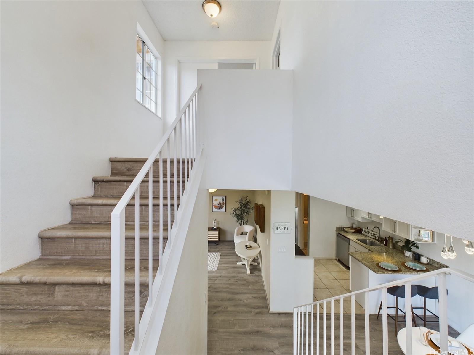 No neighbors above or below. Beautifully renovated. Corner unit AND located in a gated community?? This is the Crosspointe home you have been waiting for! Inside, a bright and open layout is complemented by upgraded flooring and refreshed kitchen cabinetry, creating a clean, modern feel throughout. The kitchen features a newer range, microwave, and dishwasher, with a functional design that connects seamlessly to the living and dining areas. A full-size washer and dryer add everyday convenience, while the covered lanai and private yard offer your own outdoor space for relaxing or hosting. Centrally located with easy freeway access, you stay connected to the entire island from here. Shopping, dining, parks, and schools are all just minutes away. Crosspointe's gated community also features an EV charging station, pool, recreation area, and security patrol. Well-maintained and move-in ready, this corner unit stands out for its layout, privacy, and location within one of the area's most desirable communities. Want to see what this home has to offer in person? Call your favorite Realtor to schedule a showing today!