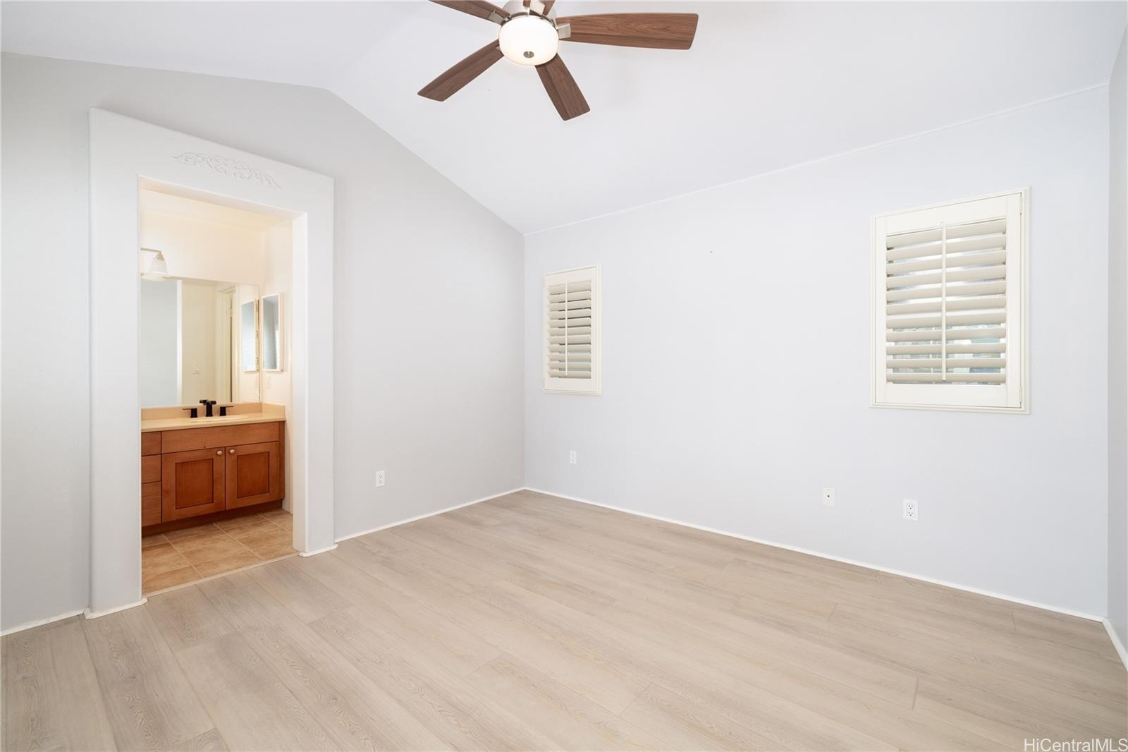 Beautiful One Story Home In KaMakana at Hoakalei. This home has plantation shutters, fresh interior paint, tile and laminate floors, ceiling fans, new kitchen appliances, central air conditioning, nest, backyard with artificial turf, front yard fully landscaped, exterior just painted, community Swim Club (pool, gym, tennis and pickle ball court).