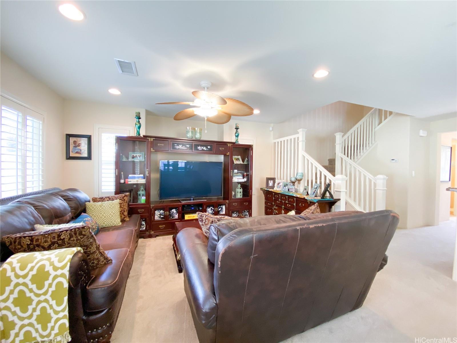 Beautiful 3-BR, 2.5-BA single-family home located in the award-winning Ka Makana at Hoakalei community. This well-maintained property features PV solar panels to help reduce electric bills, central A/C, & solar water heater. The open layout includes tile flooring in the kitchen, stainless steel appliances, & den/office on the ground floor-perfect for a home office or entertainment. Upstairs offers convenient tech area & private balcony off the primary bedroom. Plantation shutters are installed throughout. Enjoy the convenience of a 2-car garage with rafter storage & large, professionally landscaped, fenced backyard with a sprinkler system-ideal for relaxing or entertaining. HOA includes phone/cable/internet package & access to the community's amazing amenities - swimming pool with jacuzzi, tennis/pickleball court, & fitness center. The neighborhood offers walking & jogging paths, parks, playgrounds, & dog park. Conveniently located just minutes from shopping, schools, parks, restaurants, Ka Makana Ali‘i, UH West O‘ahu, golf courses, & beaches. Close to the Wai Kai waterfront recreation & lifestyle destination featuring The LineUp surf wave, lagoon water activities, dining, & more.