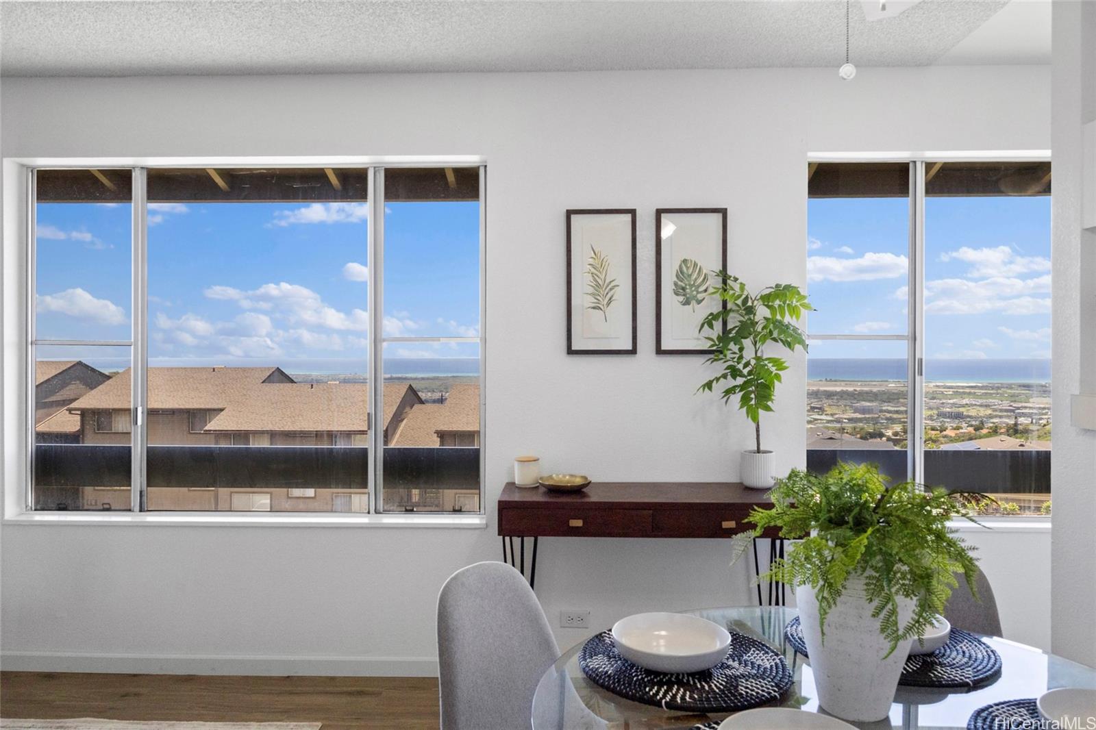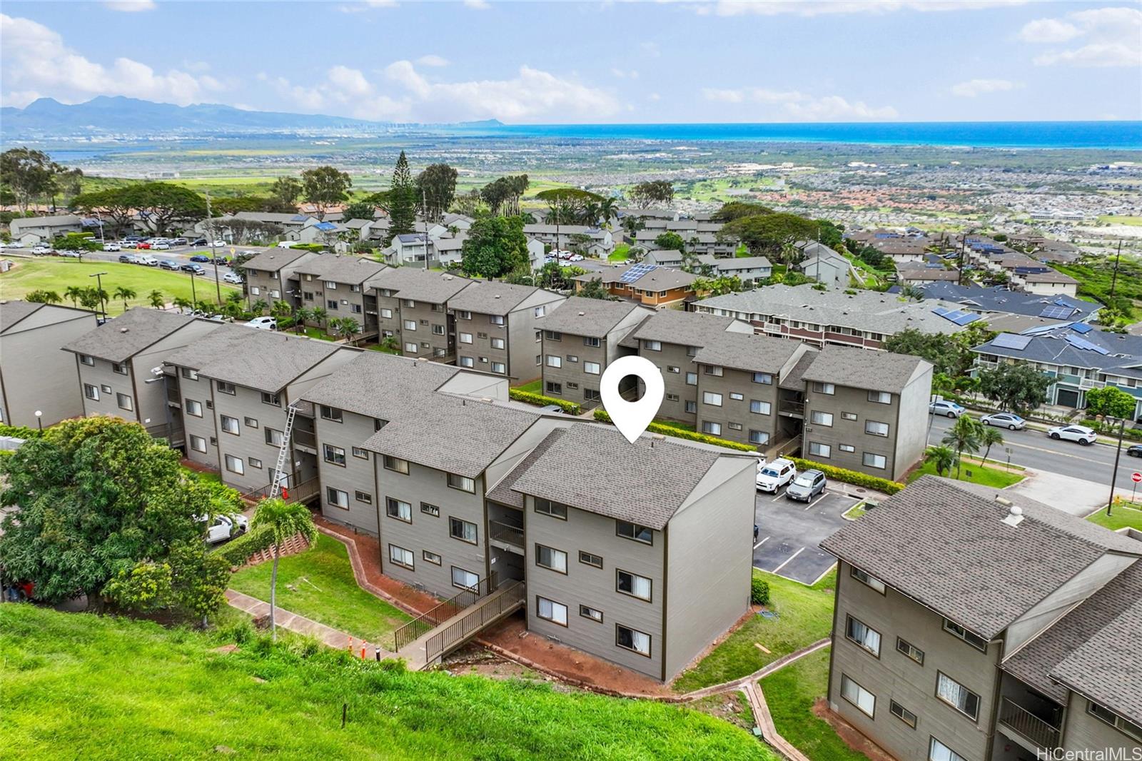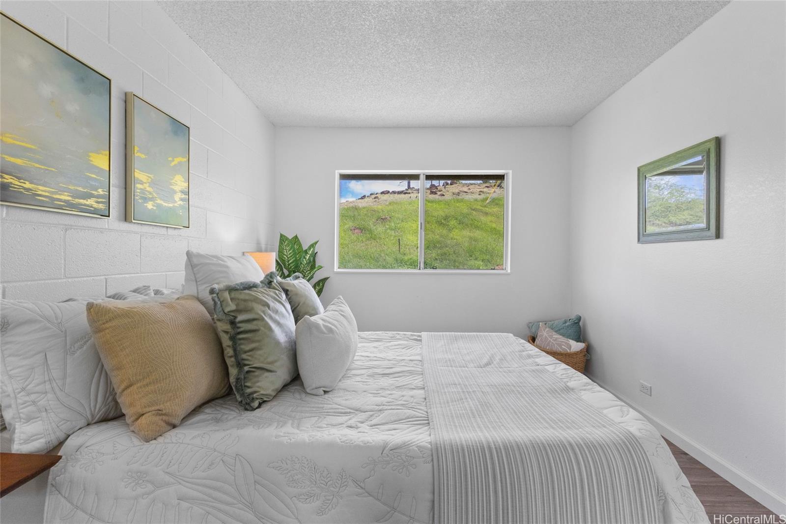 Welcome home to this move-in-ready 2-bedroom, 1-bath townhouse with 2 parking stalls in the breezy Palehua Villas community in Makakilo. This desirable end unit captures refreshing trade winds and offers beautiful Diamond Head and ocean views—creating a comfortable and inviting place to call home. Did I mention it’s pet-friendly too! Recently remodeled in 2025, the interior showcases a clean, modern design ideal for everyday living. Fresh interior paint brightens the space, while luxury vinyl plank flooring flows throughout the main living areas and bedrooms, offering both style + durability. New water heater + enjoy the added convenience of an in-unit washer + dryer. Perfect for first-time buyers or investors, this home also benefits from Makakilo’s cooler hillside climate and peaceful surroundings. Conveniently located just minutes from freeway access, shopping, dining, schools, golf courses + beaches.