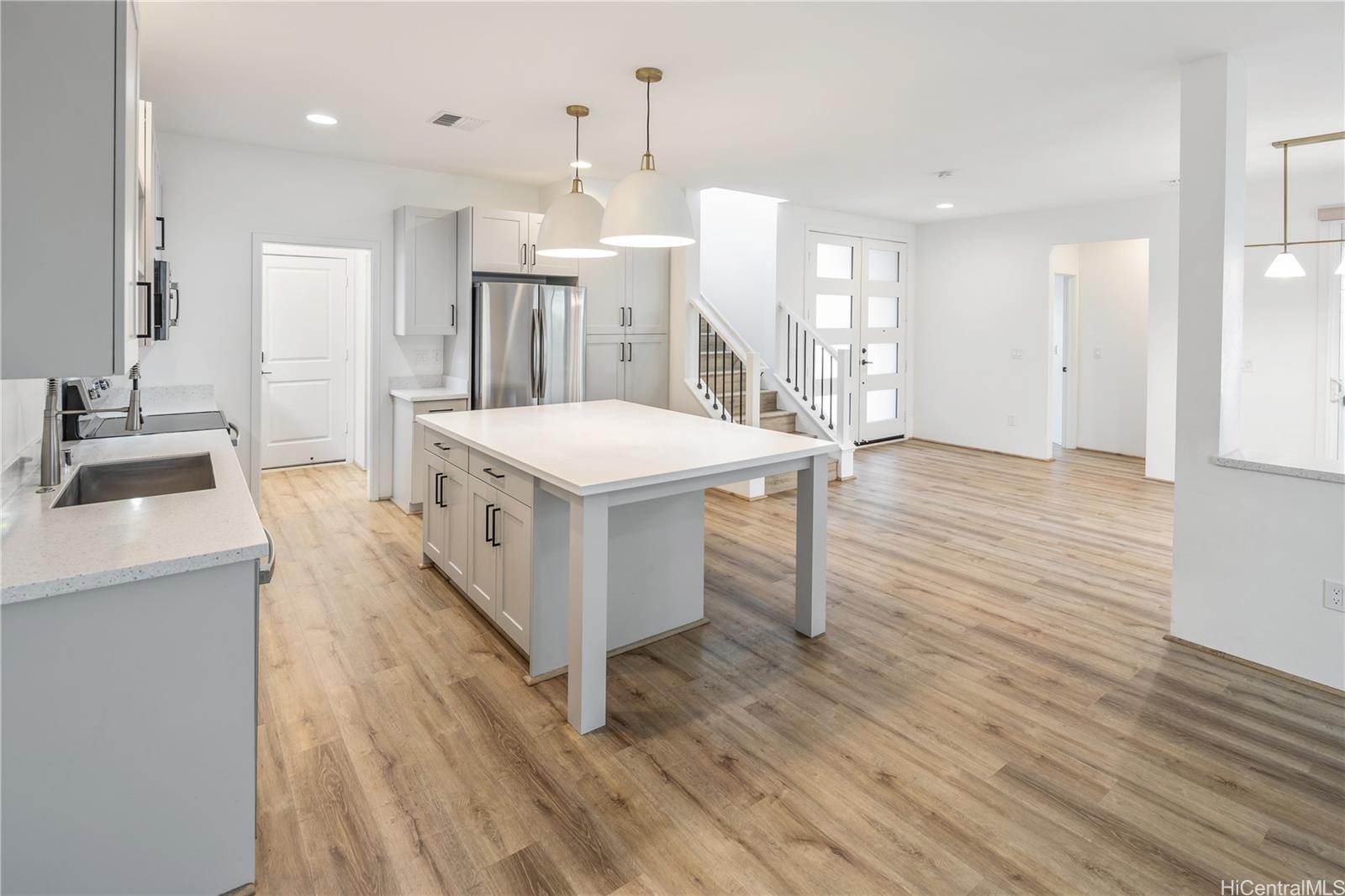 エヴァ・ジェントリーの最新高級住宅地マカマエにある、魅力的なホオマウ・プランの住宅です。2022年に建てられたこの家は、まるで新築のように美しく保たれています。オーナーがこのモデルを選んだのには理由があり、その理由は一目瞭然です。まず目に留まるのは、リラックスしたり、ゲストをもてなしたりするのに最適な、広々とした屋根付きラナイ。さらに、ゲストや親戚、ホームオフィスとしても使える、ゆったりとした1階のベッドルームとフルバスルームも備えています。室内は、理にかなったレイアウト。高い天井、広々としたパントリー、モデルハウスと同様の高級ビニール製フローリング、アップグレードされたカウンタートップ、ステンレス製家電など、清潔感のある仕上げが施された、開放的で明るく機能的な空間です。広い私道と路上駐車の心配がないという点も大きな魅力で、想像以上に重宝するでしょう。さらに、テスラ製バッテリーを備えた14枚の自家所有の太陽光発電パネルが、エネルギーコストの削減に貢献します。マカマエはエヴァで最も人気のある新しいコミュニティの一つに急速に成長しており、このような住宅はその大きな理由の一つです。画一的ではなく、あなたのニーズを満たす住宅をお探しなら、まさにこれです。オープンハウス:4月12日(日)午後2時~4時