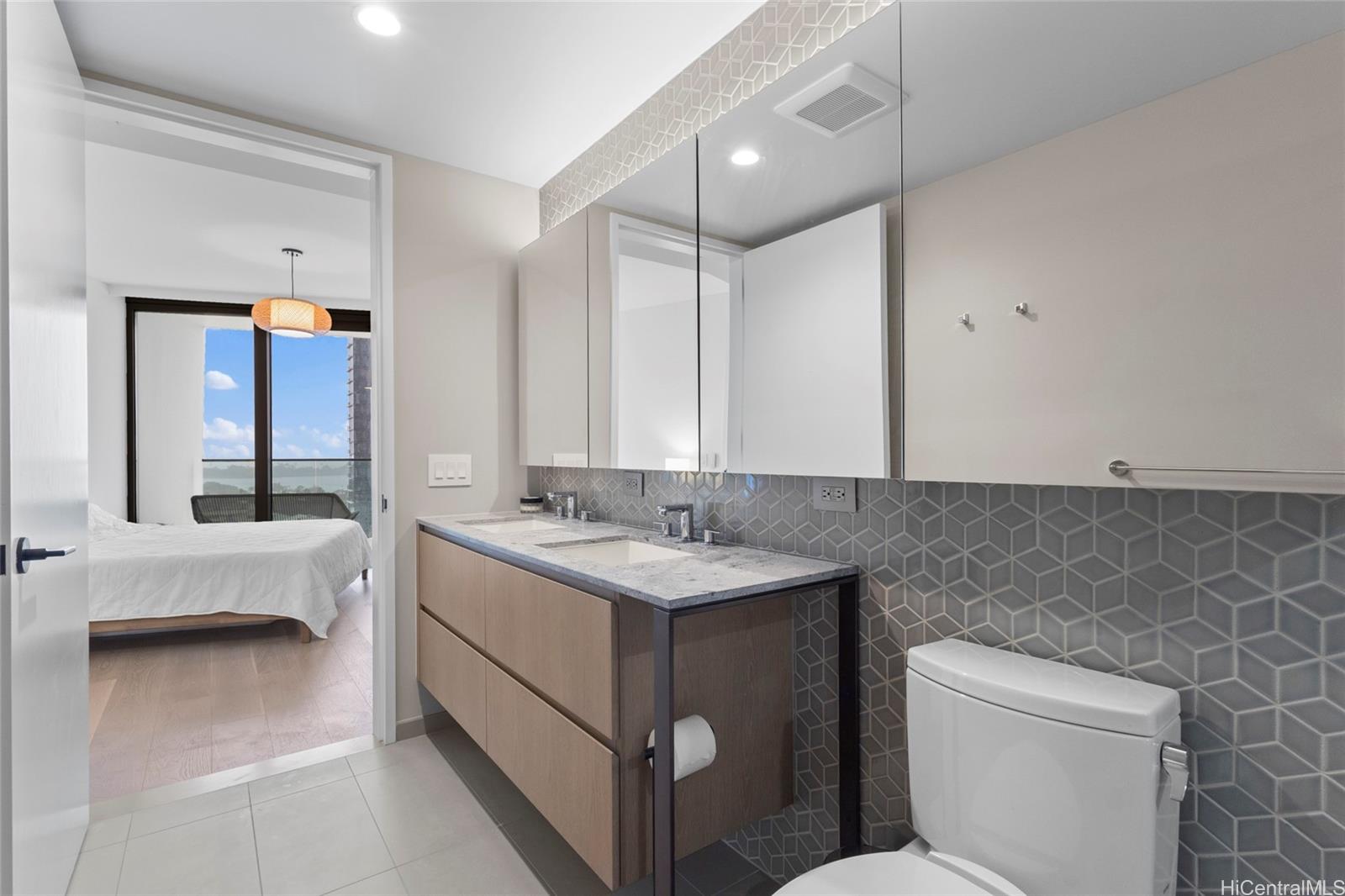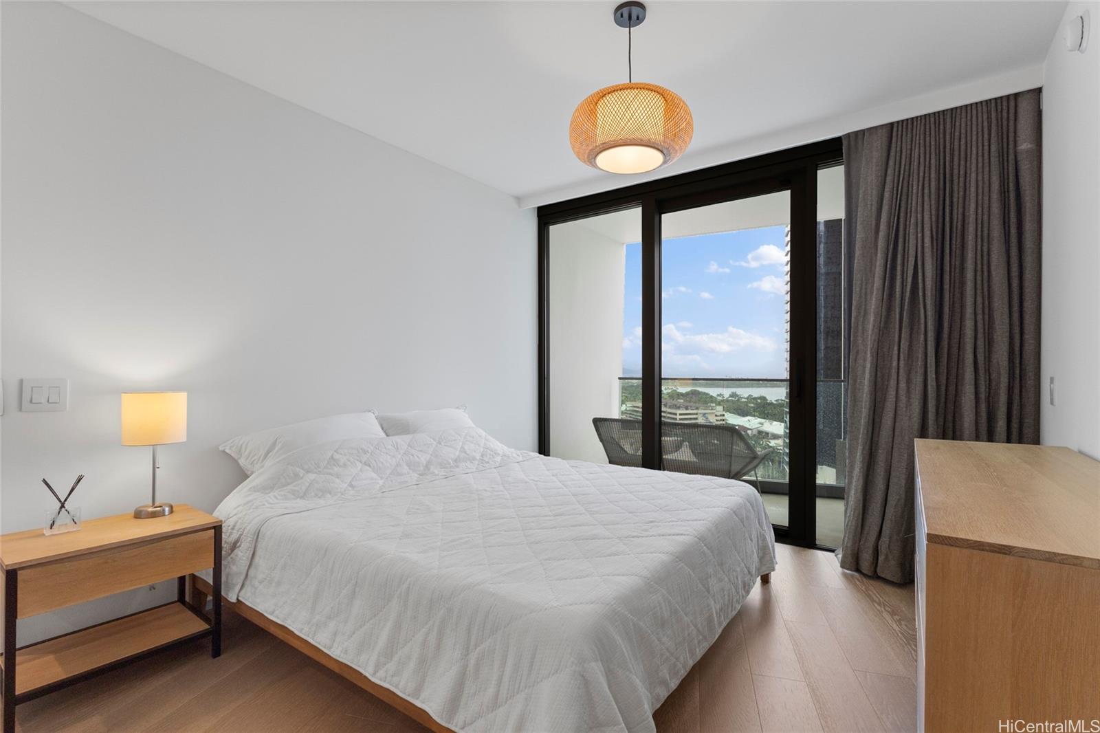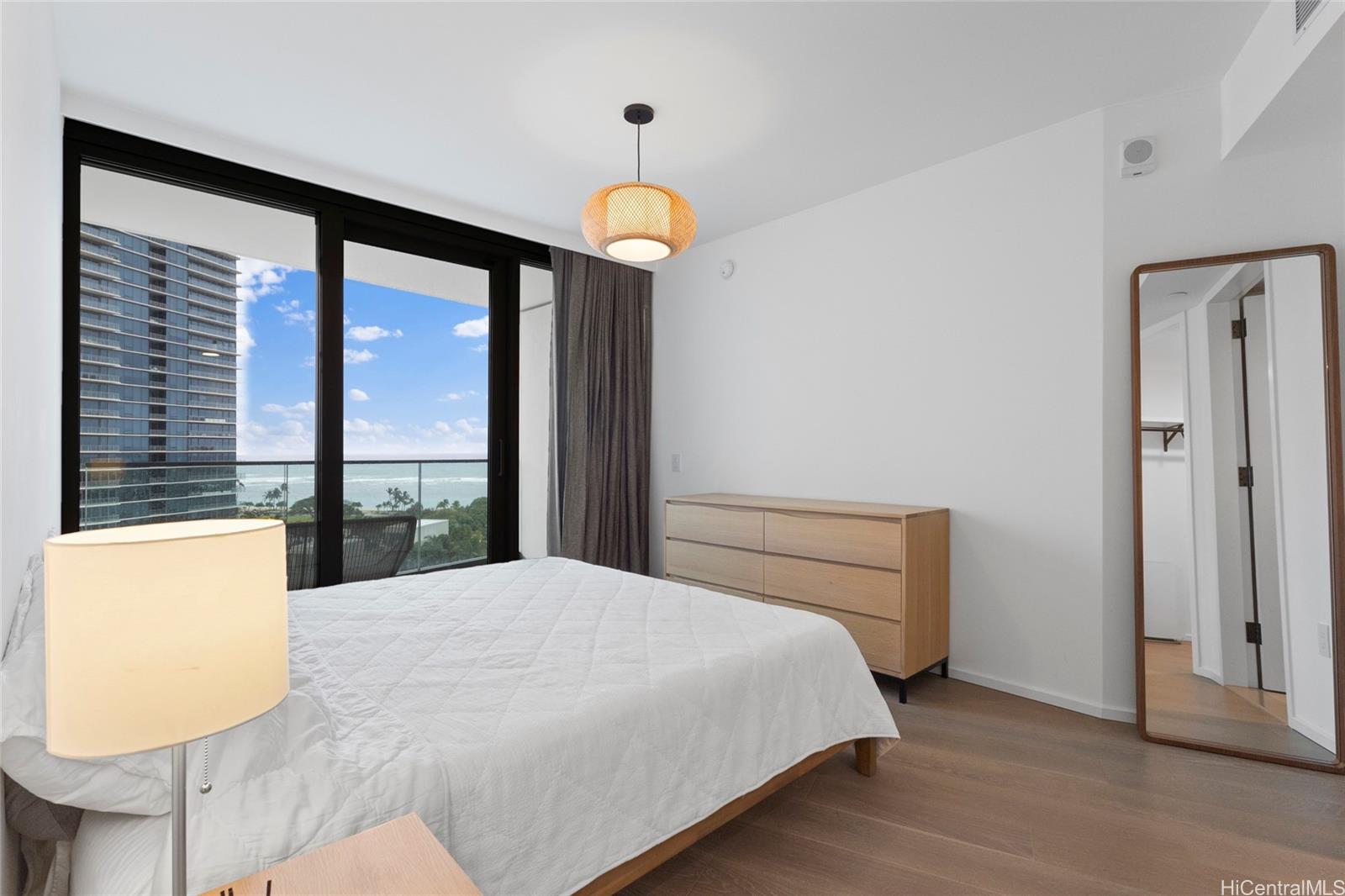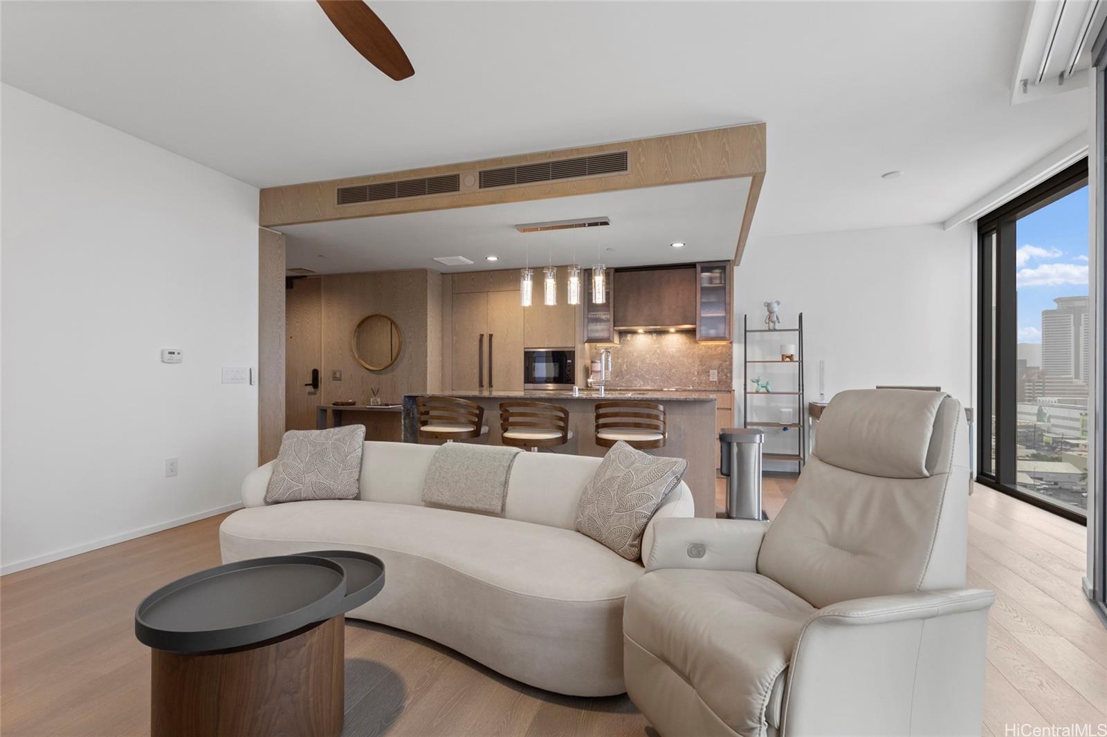 Experience the heights of urban sophistication in the heart of Ward Village. This 2-bedroom, 2-bathroom residence blends organic forms with modern luxury. Elegant 9-foot+ ceilings and floor-to-ceiling windows create a sense of dramatic volume, framing cinematic views of Victoria Ward Park and the Pacific horizon. The interior features warm hardwood flooring and a gourmet chef’s kitchen outfitted with a premium suite of Miele appliances, custom cabinetry, and sleek stone countertops. The open-concept layout flows seamlessly onto a private lanai, acting as a bridge between your serene sanctuary and the vibrant energy of Kakaako. Residents enjoy world-class, resort-style amenities, including a lap pool, two whirlpools, a state-of-the-art fitness pavilion, and a grand social lounge. Perfectly positioned in Honolulu’s most walkable neighborhood, you are steps from the flagship Whole Foods, elite dining, and Ala Moana Beach Park. Koula demonstrates the perfect blend of architectural brilliance and island ease. Book a private showing today!
