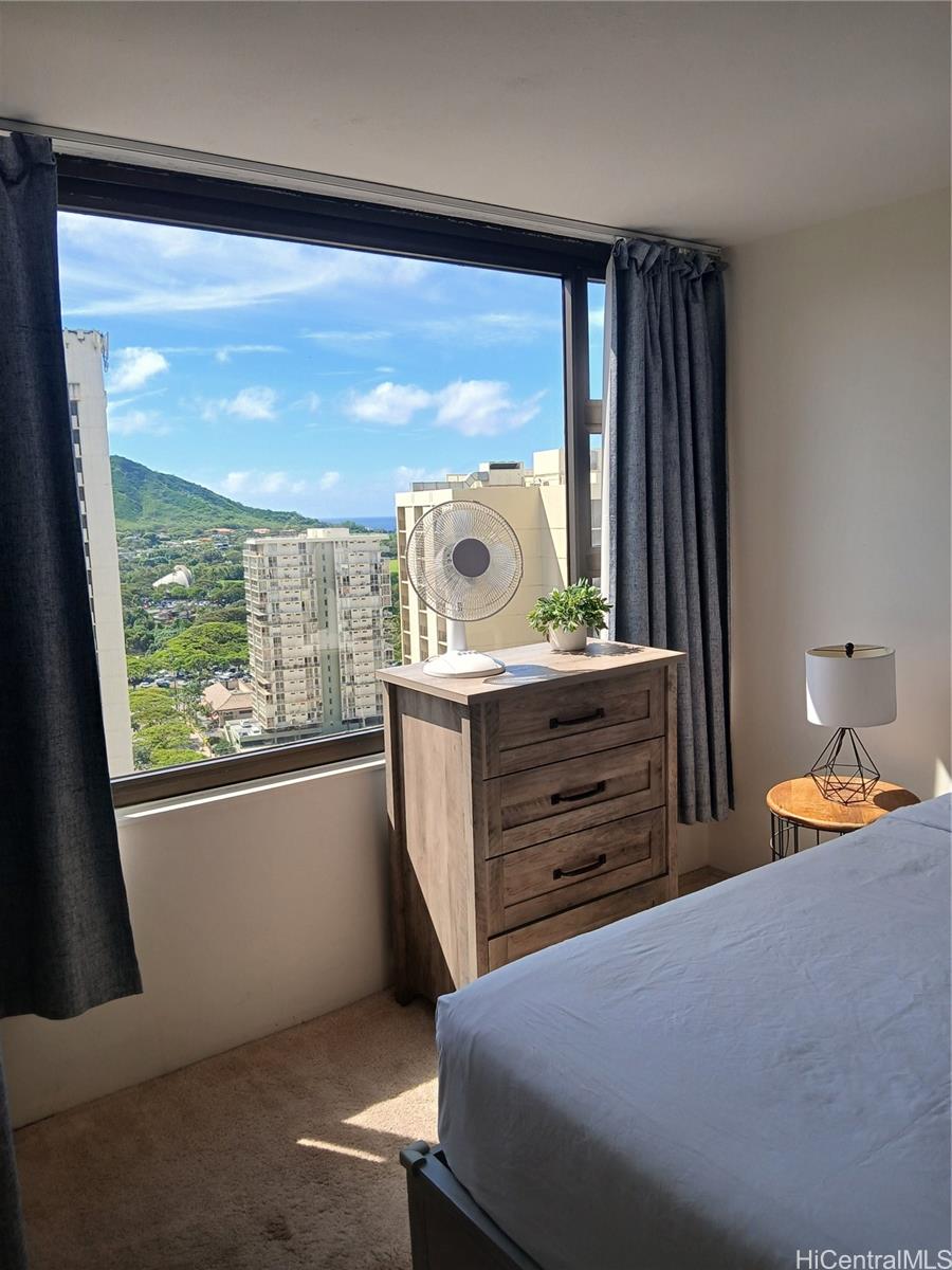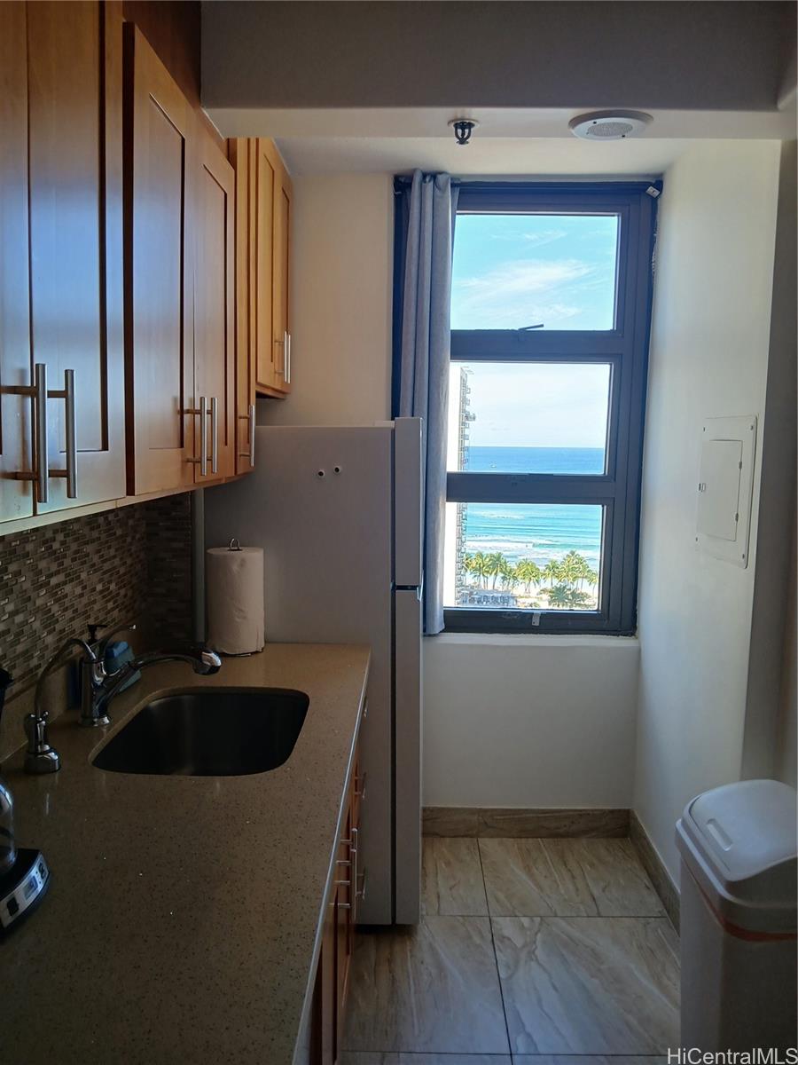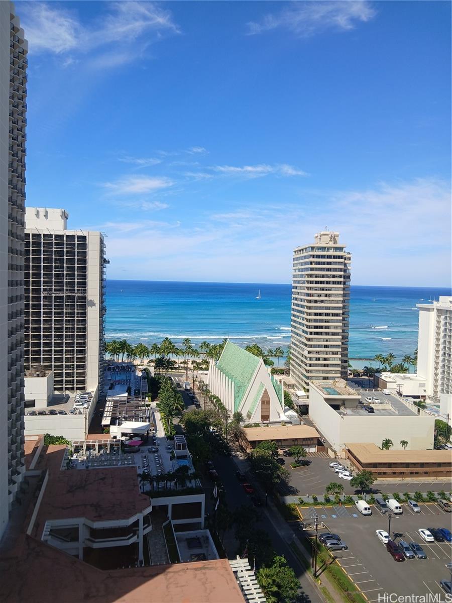 that gives the kitchen a clean, modern edge. The upscale bathroom travertine tiled shower is creating a spa-like retreat after a day in the sun. What truly sets this unit apart? Ocean views from kitchen & bedroom—a rare & valuable feature that keeps guests coming back & booking full. As a large corner unit, you’ll enjoy added privacy, natural light, airy feel. Offered fully furnished & turnkey for short-term rental, this condo is ready to generate income from day 1. Even better, it includes parking, a highly sought-after perk in Waikiki. Whether you're looking invest or secure a personal getaway that pays for itself, this Gem delivers the full island experience.