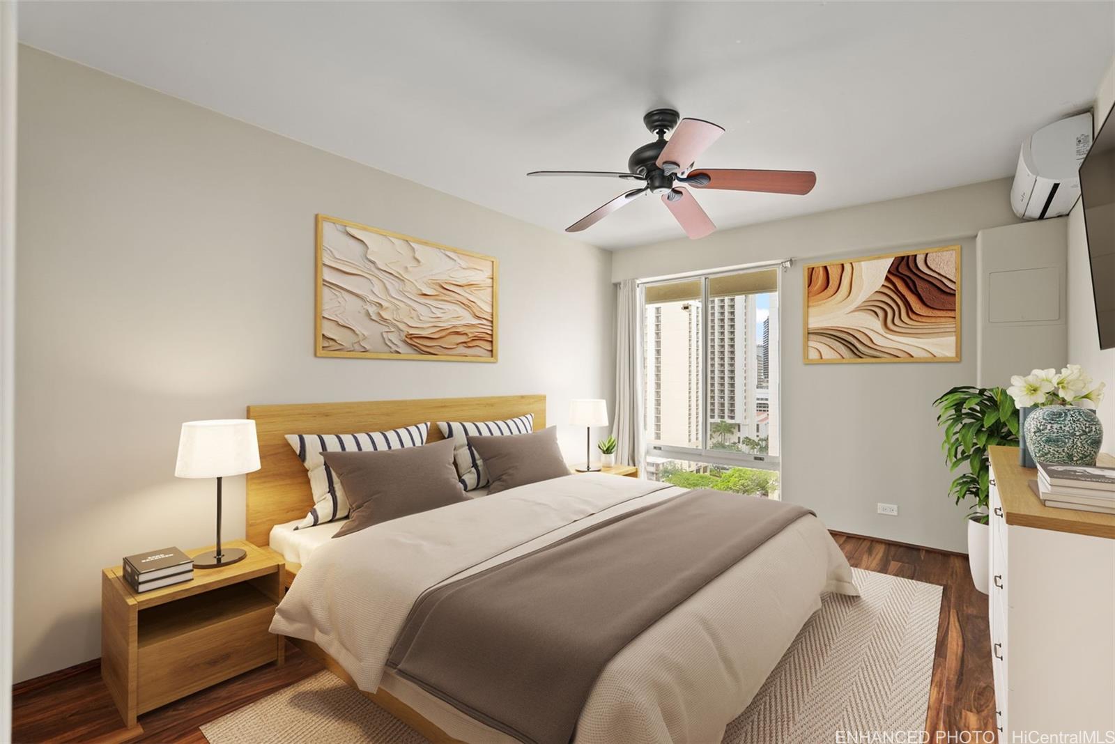 NEW LISTING!! Located at the Diamond Head end of Waikiki, this beautifully updated high-floor 2 bdrm/2 bath residence at Parkview offers stunning city, Diamond Head, ocean and mountain views. The open-concept kitchen is appointed with stainless steel appliances and flows seamlessly into the living area, enhanced by two lanais that invite in sweeping vistas. Added privacy is provided as there are only four units per floor and the unit includes 1 covered parking stall. It is conveniently located just moments from world-famous Waikiki Beach, Kapiolani Park, and the Waikiki Shell, and close to an abundance of dining, cafés, and shopping. An excellent opportunity for a primary residence, second home, or investment property in one of Honolulu’s most vibrant neighborhoods. A few photos have been virtually staged(enhanced).