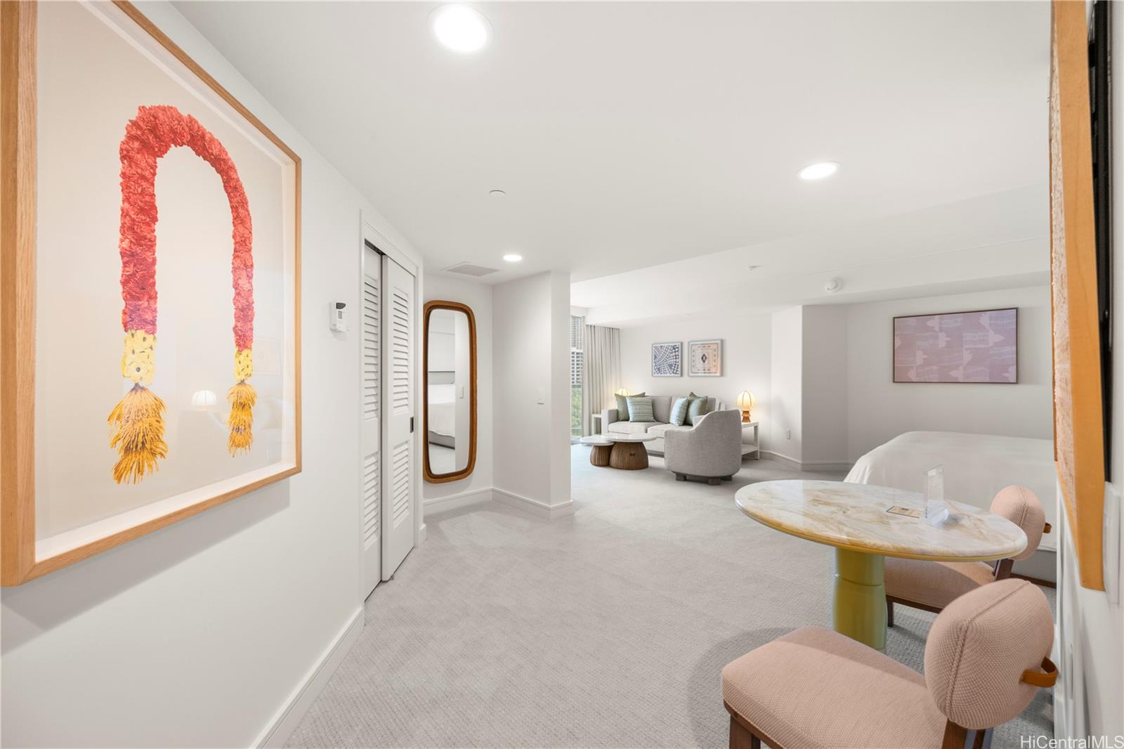 めったに手に入らない最大のスタジオユニット、ダイニングテーブルと椅子付きのリビングスペース617平方フィート。2026年1月に改装完了!Ka La'i Waikiki Beach、LXR Hotels & Resorts Hotel/Condoで贅沢な暮らしをお楽しみください!(旧トランプインターナショナルホテルワイキキ)このスタジオユニットは、リネン類とキッチン用品がすべて揃ったフル家具付きで、海と山の景色が楽しめます!最高級のアメニティには、インフィニティプール、コンシェルジュ、バレーパーキング、フルサービスのスパが含まれます。購入には、高級家電、花崗岩のカウンタートップ、トラバーチンタイルの床が含まれます。ワイキキの有名な白い砂浜からすぐです。ユニットがホテルレンタルに参加するには内装の改装が必須ですが、このユニットはプログラムに参加する資格があります。残っているのは税区分を変更することだけです!